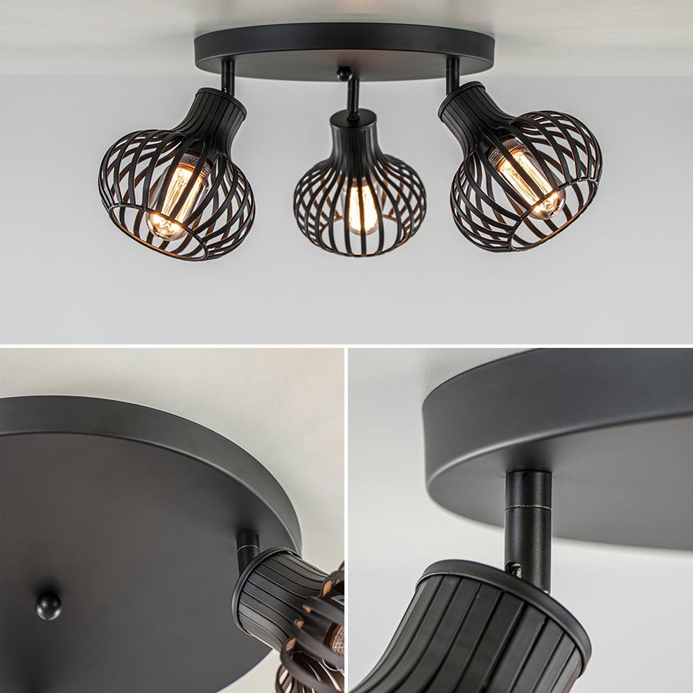 / Lampen / Draadlampen / Ronde 3-lichts plafondlamp Daria met verstelbare kappen