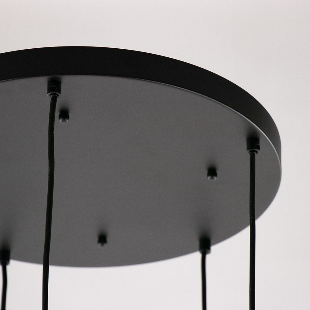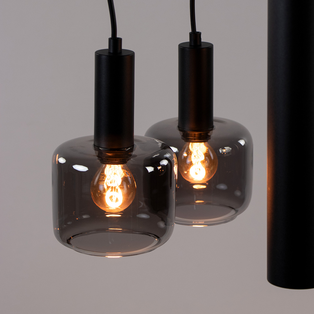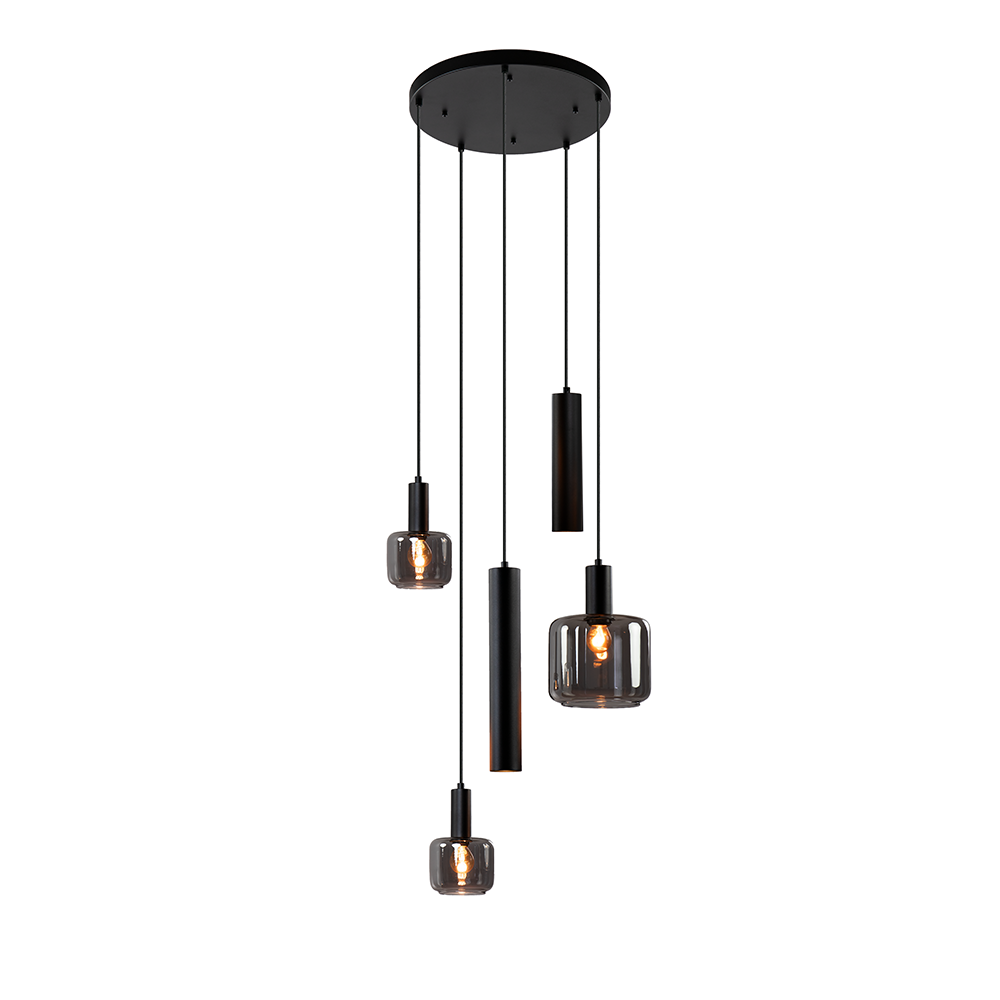/ Lampen / Eettafellampen / Ronde Hanglamp 5-L – zwart + smoke glas