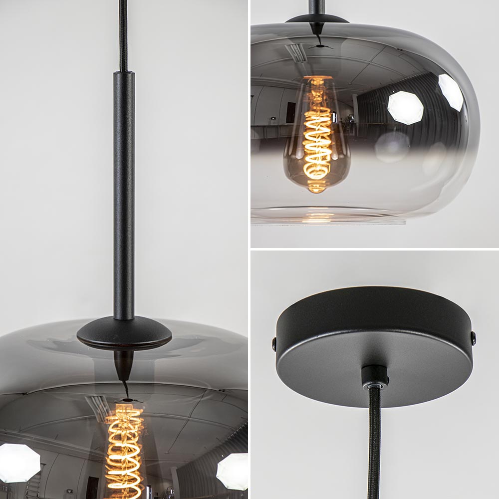 / Lampen / Hanglampen / Ronde hanglamp zwart met smoke/helder glas gradient
