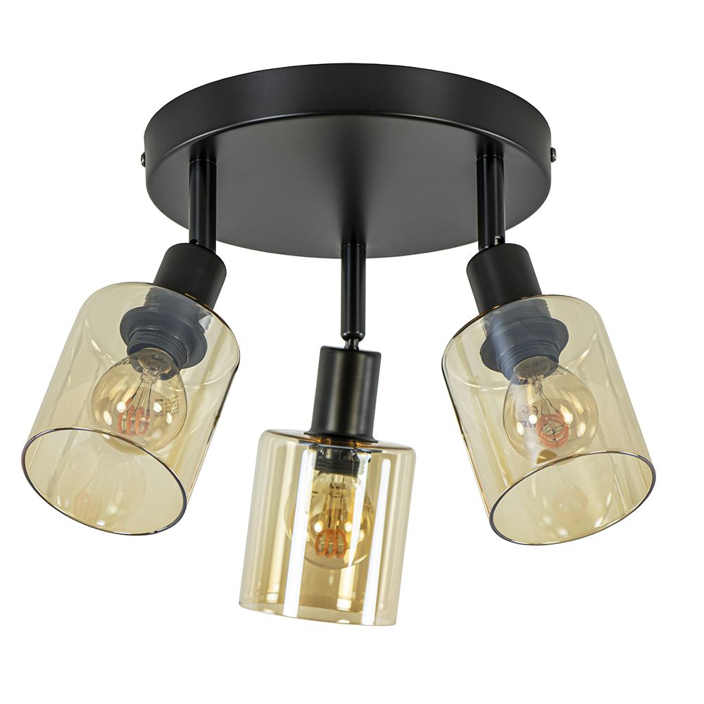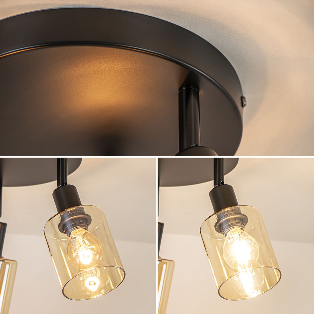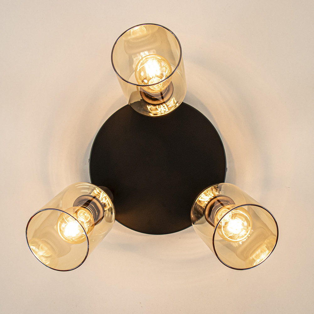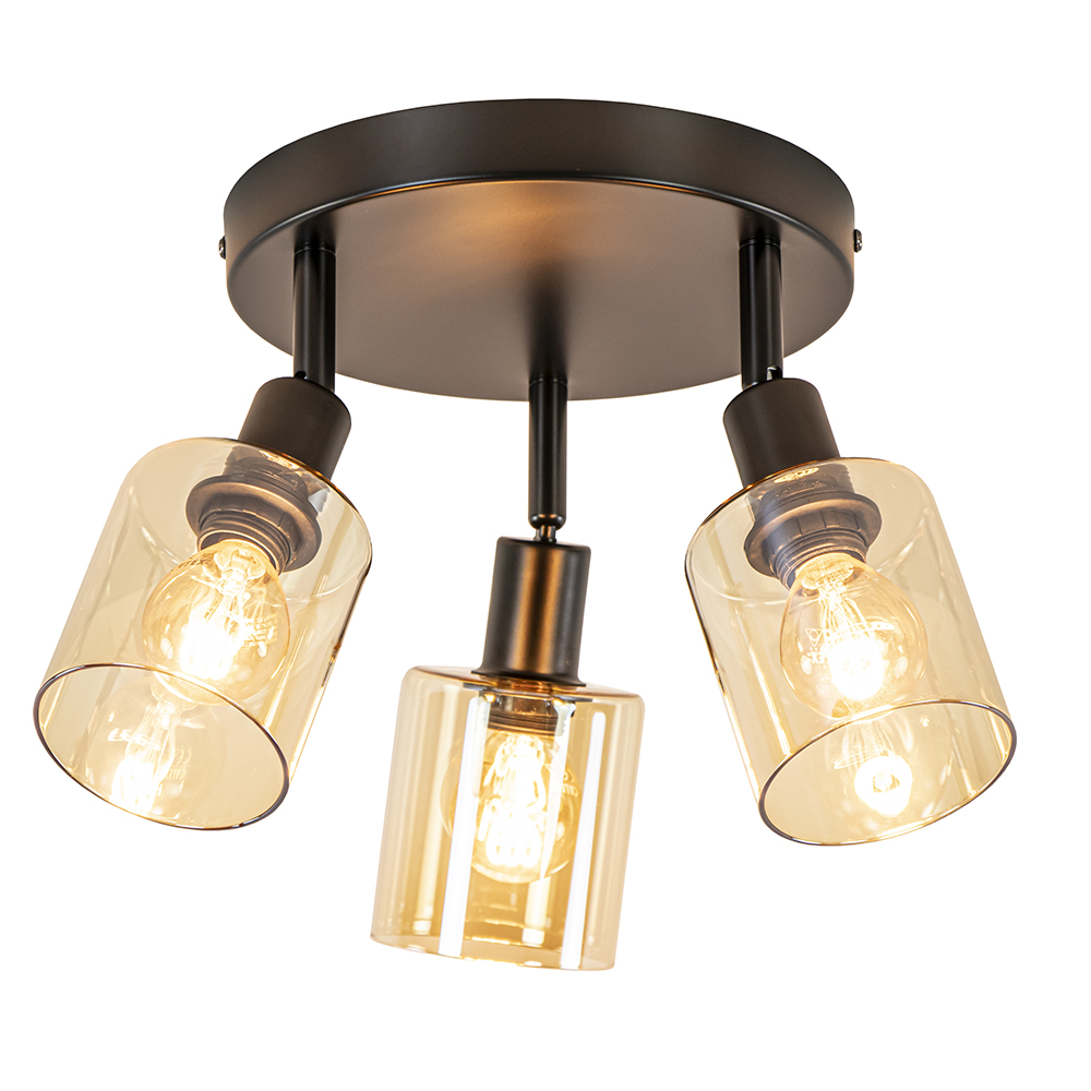 Homepagina / Lampen / Plafondlampen / Ronde plafondlamp 3-lichts zwart met amber glazen kappen
