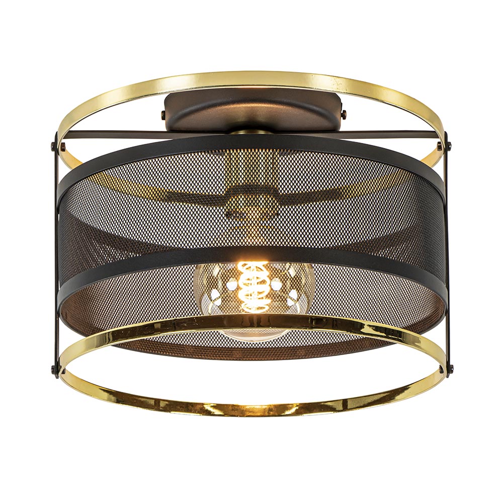 / Lampen / Plafondlampen / Ronde plafondlamp gaas mat zwart met hoogglans goud