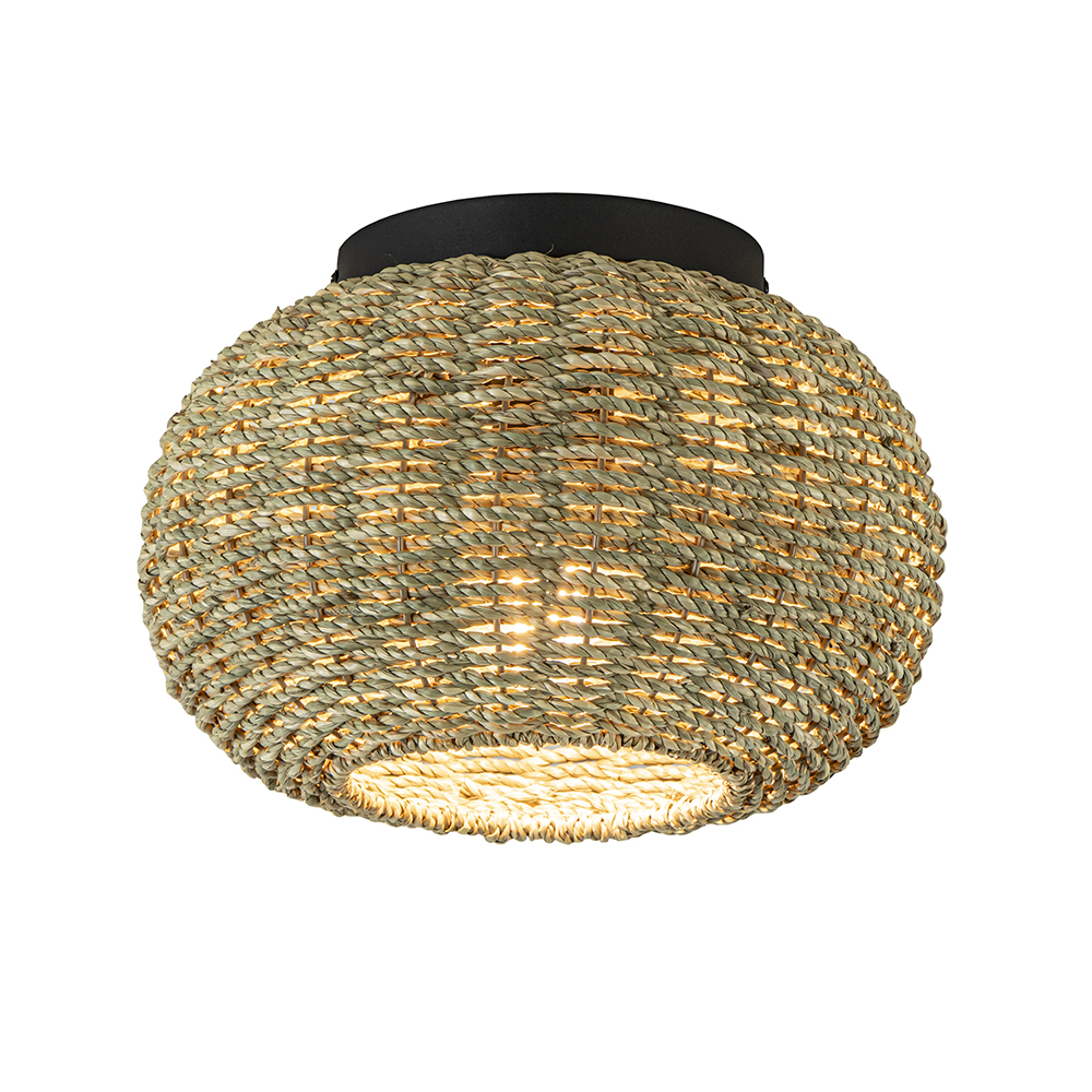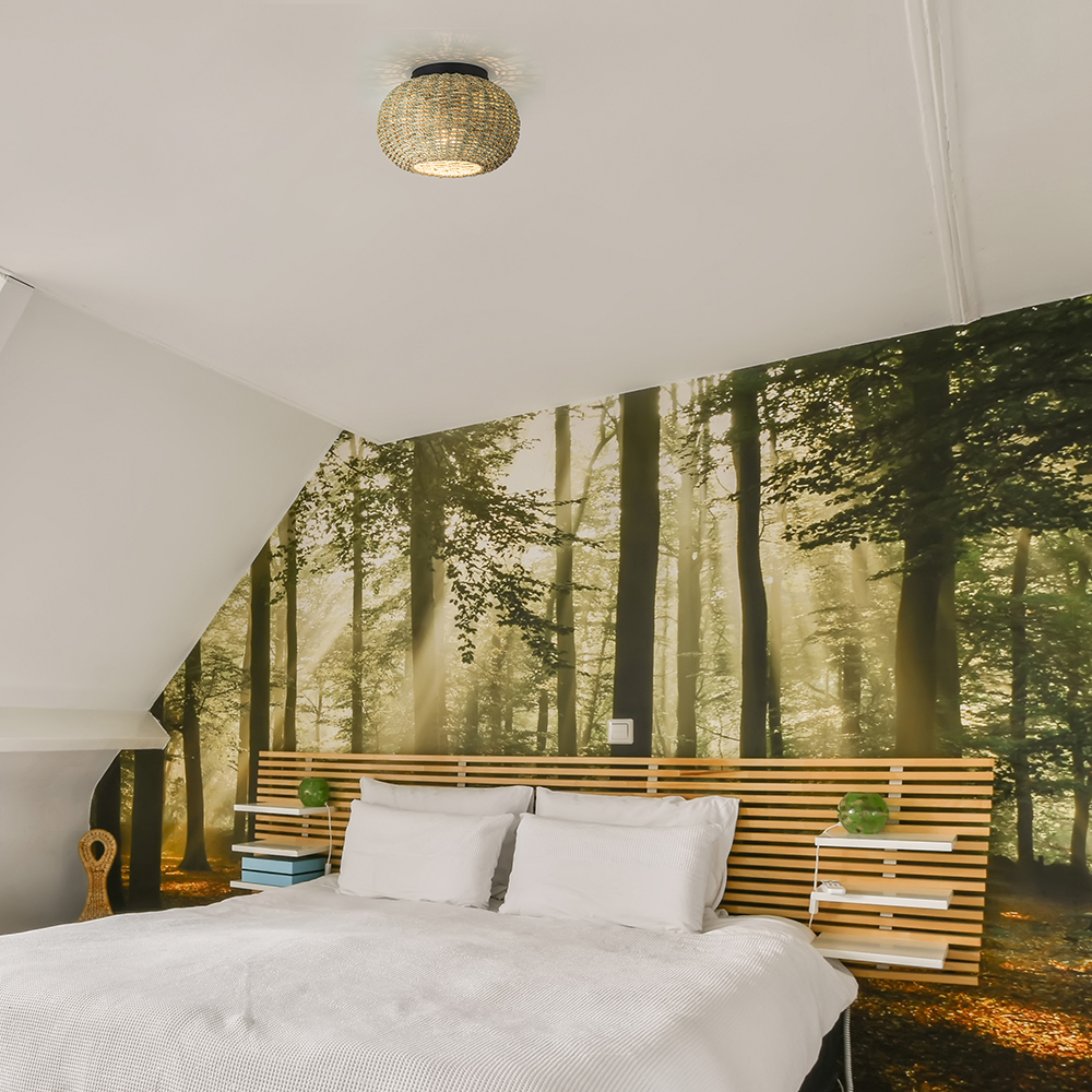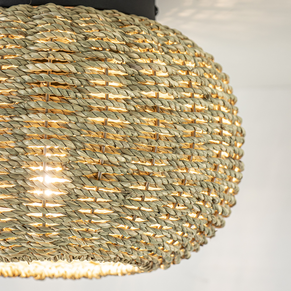 In de botanische trend zijn veel natuurlijke en duurzame materialen te vinden. Deze plafondlamp past daar perfect bij doordat deze is gemaakt van touw. Dit is strak om een frame gespannen en gevlochten wat de kap een leuk effect geeft. Door z’n grootte past de plafondlamp is diverse ruimtes als de hal, woonkamer of slaapkamer. De plafondlamp wordt geleverd exclusief lichtbron.