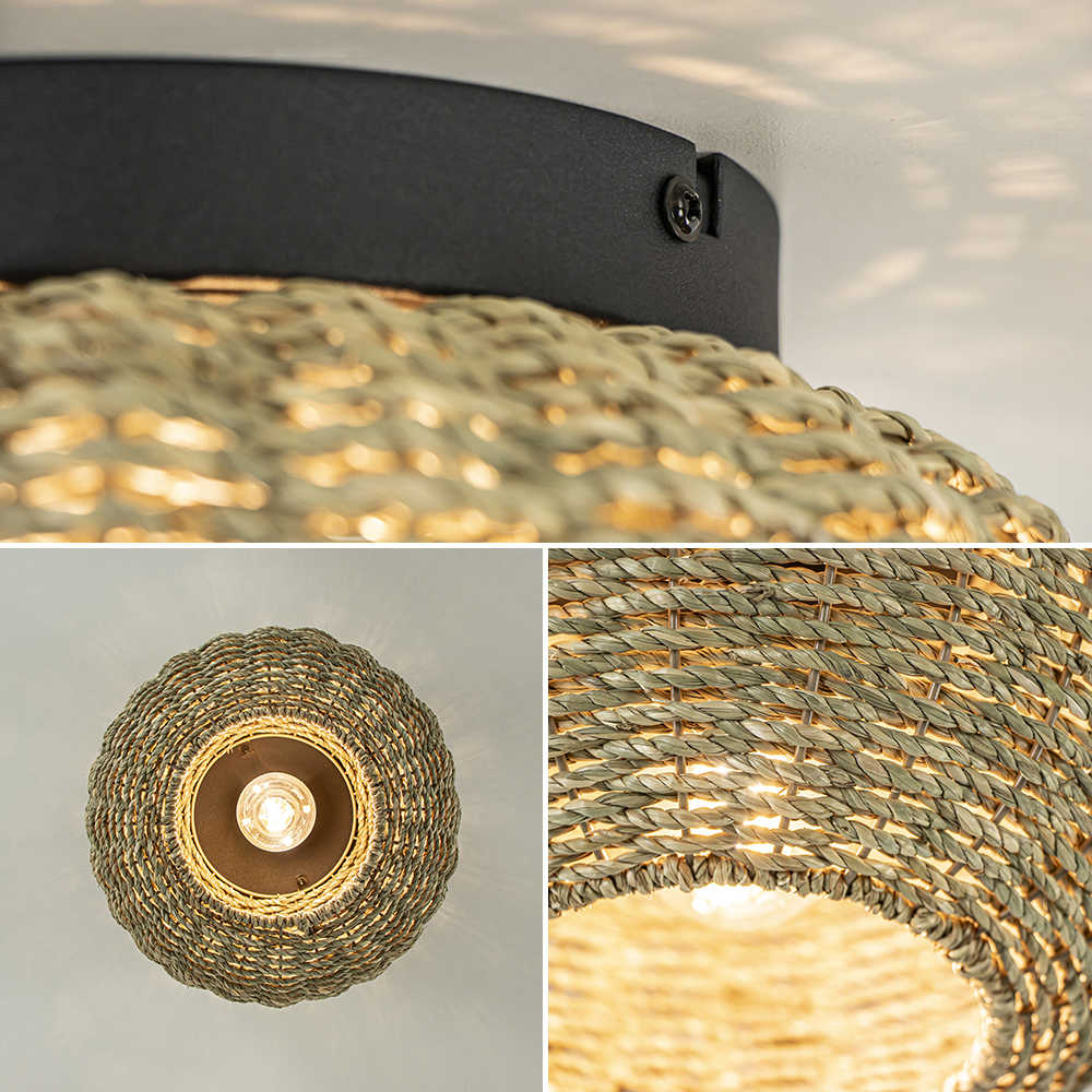 / Lampen / Plafondlampen / Ronde plafondlamp touw met zwart 30 cm