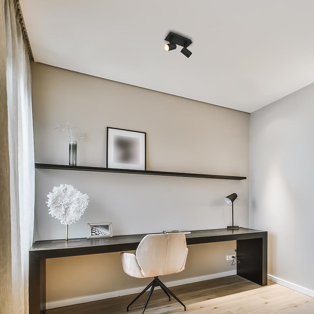 Scandinavisch, modern en functioneel in één. De strak vormgegeven opbouwspot is voorzien van LED wat de plafondlamp energiezuinig maakt en heeft een dim to warm functie. Wanneer de lamp wordt gedimt, dan wordt niet alleen de intensiteit minder, maar ook de kleurtemperatuur wordt warmer. Dit werkt met een externe dimmer (exclusief). De 2 cilindervormige spots zijn naar wens te verstellen door deze te draaien en/of te kantelen. De 2-lichts opbouwspot is IP44 goedgekeurd zodat deze ook in een badkamer kan worden toegepast.