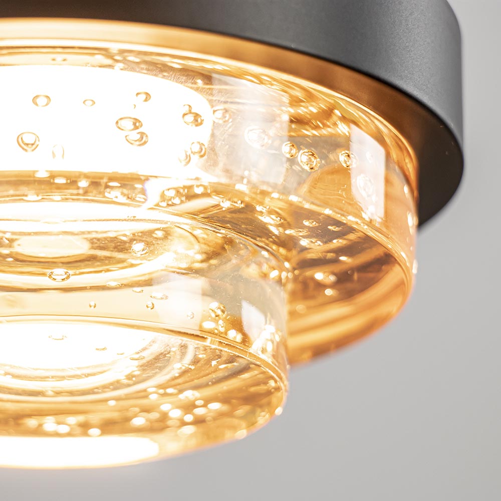 Een sfeervolle toevoeging voor boven een ronde eettafel of salontafel. De kappen hebben een aparte vorm en zijn voorzien van LED verlichting. De kappen zijn deels van massief glas en deels mat zwart metaal. Dit geeft de lamp een luxe uitstraling. Het glas is voorzien van luchtbelletjes wat de hanglamp een speels effect geeft. De hanglamp is gemakkelijk in hoogte aan te passen.