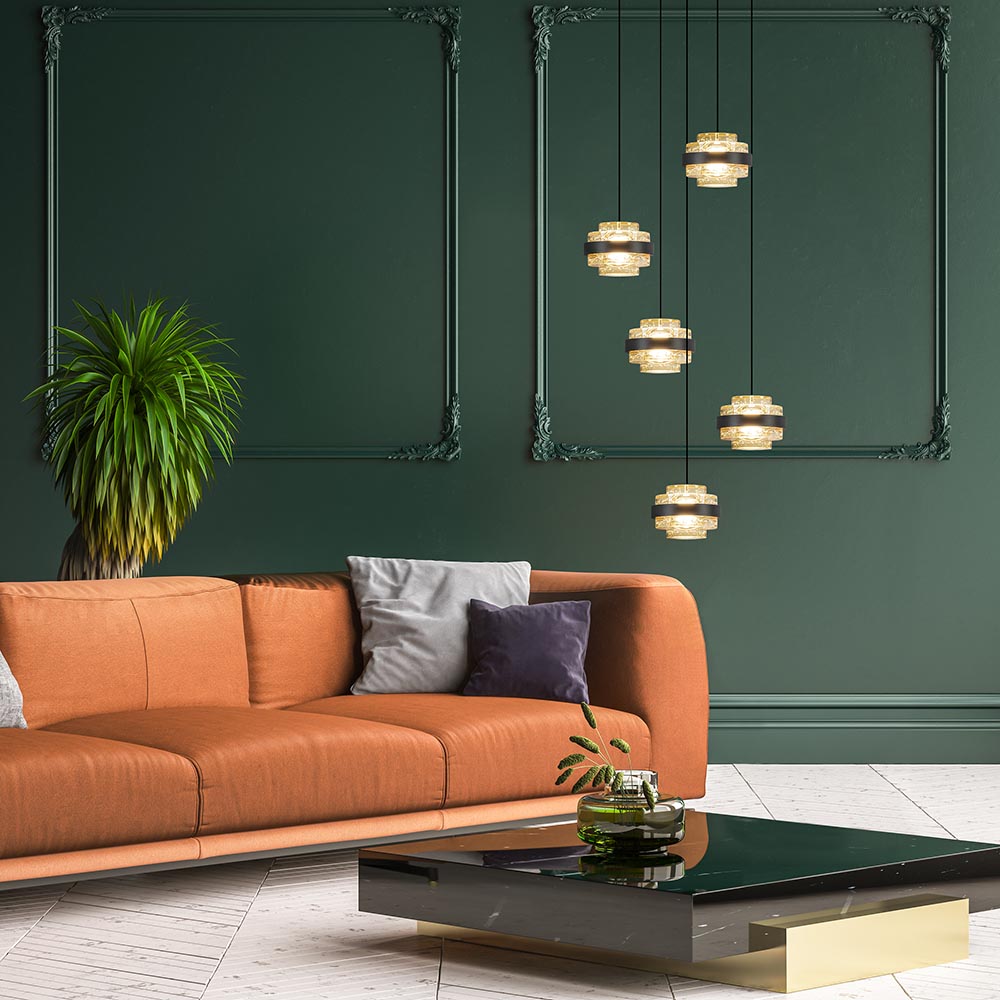 Sfeervolle 5-lichts hanglamp zwart/champagne inclusief LED