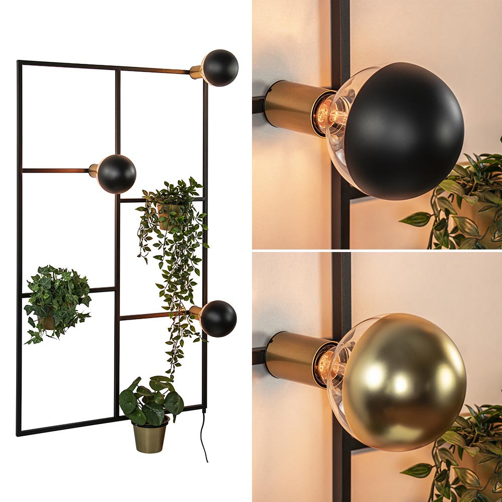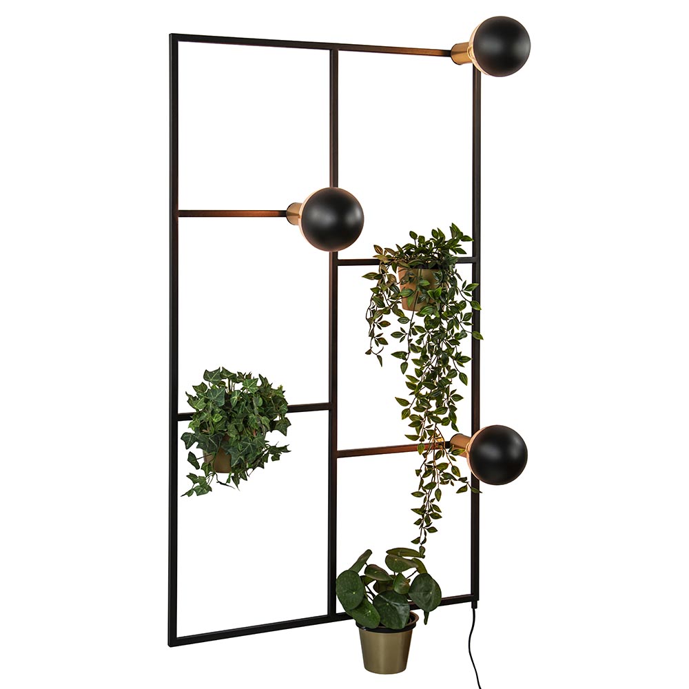 – afm: 70x4x130 cm – metaal – zwart/goud – inclusief snoer: 145 cm – inclusief potjes – exclusief lichtbron (3x E27) – exclusief plantjes