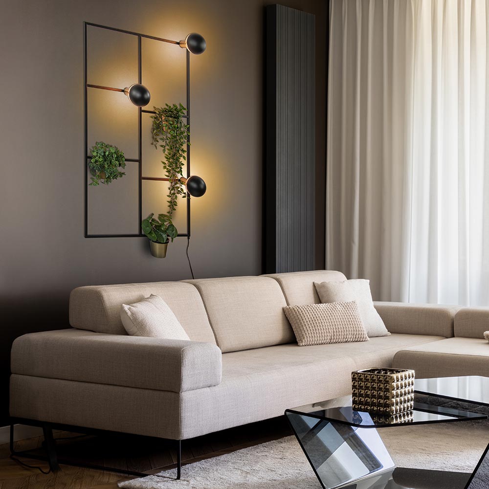Decoratief en sfeervol ineen. Deze wandlamp is een echte sfeermaker in het interieur. Naast verlichting zorgt de wandlamp ook direct voor wat groen in huis. De wandrek lamp wordt namelijk geleverd inclusief potten. Ideaal om een leuke plant in te doen. Het metalen frame wordt gemakkelijk aan de wand bevestigd en is voorzien van een snoer met een lengte van 145 cm. Naast de potten is de lamp ook voorzien van 4 E27 fittingen. Een decoratieve lichtbron is een mooie combinatie in de wandlamp. De decoratieve wandlamp is een mooie toevoeging aan een hal of woonkamer.