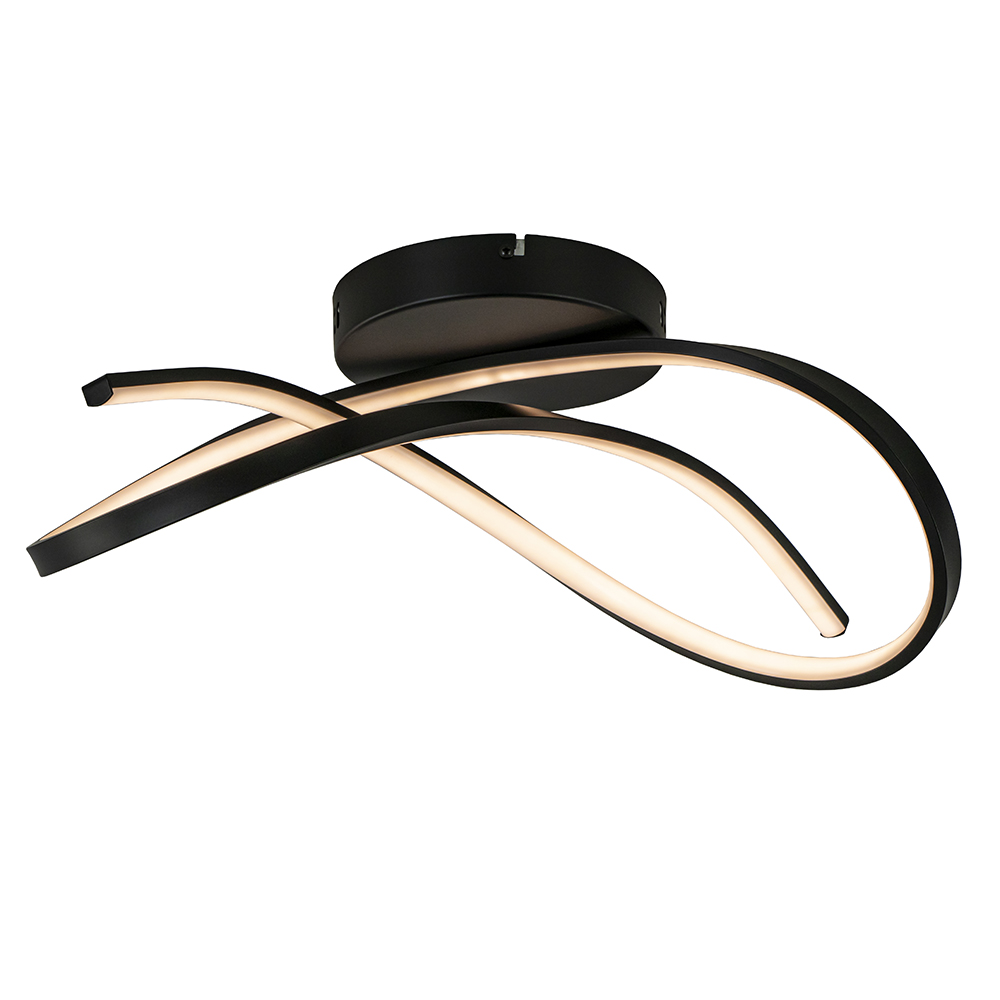 Ideaal voor in de hal of slaapkamer. Deze moderne plafondlamp heeft een sierlijk design dat is vormgegeven als de lusjes van een knoop. Het armatuur is gemaakt van metaal en uitgevoerd in het zwart. De lusjes zijn volledig voorzien van geïntegreerd LED welke dmv een externe dimmer kan worden gedimt (exclusief). De verlichting is met 2700 Kelvin warm wit van kleur voor een sfeervol geheel.
