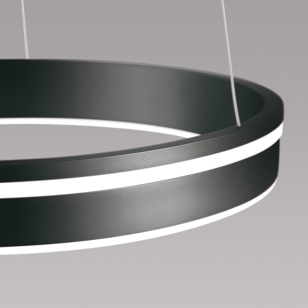 Een modern en strak design dat helemaal past bij de hedendaagse woontrends. De hanglamp bestaat uit een ring die op twe plekken is voorzien van een LED strip. Dit zorgt dat de lamp mooi diffuus licht geeft. Deze moderne hanglamp is zowel in lichtsterkte als in lichtwarmte dimbaar. Hij is eenvoudig te bedienen met de bijgeleverde afstandsbediening en de app. De hanglamp kan geïntegreerd worden in bestaande smart systemen met een Zigbee standaard.
