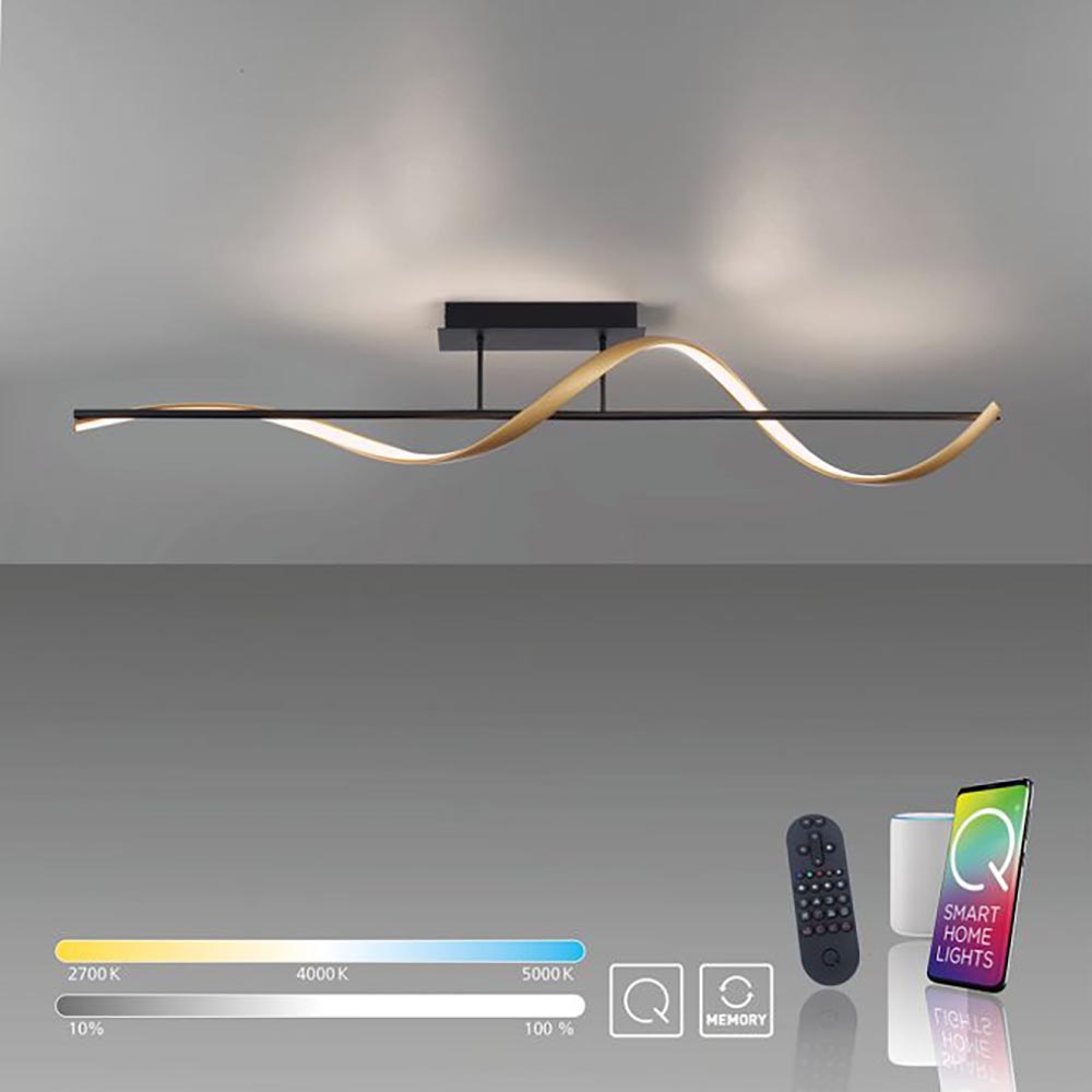 Deze moderne plafondlamp is een prachtige toevoeging aan uw collectie smart lampen. De LED plafondlamp is bedienbaar middels een meegeleverde afstandbediening of de smartphone en kan worden geïntegreerd in bestaande smart home-systemen die gebaseerd zijn op de ZigBee-standaard. De smartlamp heeft een spiraal vormige kap die is uitgevoerd in het goud. Dit in combinatie met het antraciet maakt de lamp prima geschikt voor diverse woonstijlen. Kies gemakkelijk de juiste sfeer en geniet van een heerlijke ambiance. De plafondlamp is voorzien van een memory functie zodat u niet steeds alles opnieuw hoeft in te stellen.
