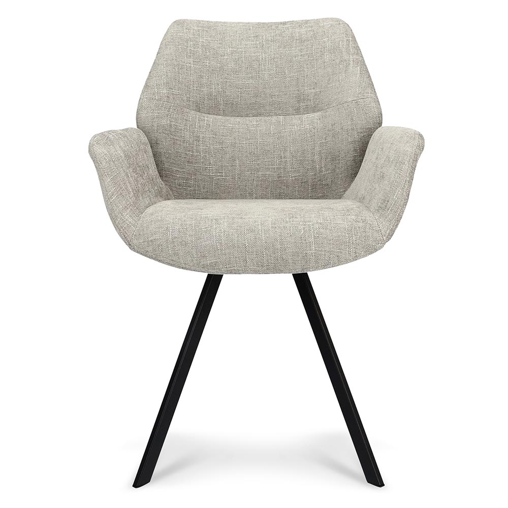 Deze stijlvolle armstoel zorgt ervoor dat dineren nog fijner wordt. De kuipstoel heeft een stoffen zitting met een fijn zitcomfort en armleuningen die het comfort versterken. De kuip wordt ondersteund door metalen poten die zijn uitgevoerd in het zwart. De armstoel zorgt voor comfort en stijl in de eetkamer.
