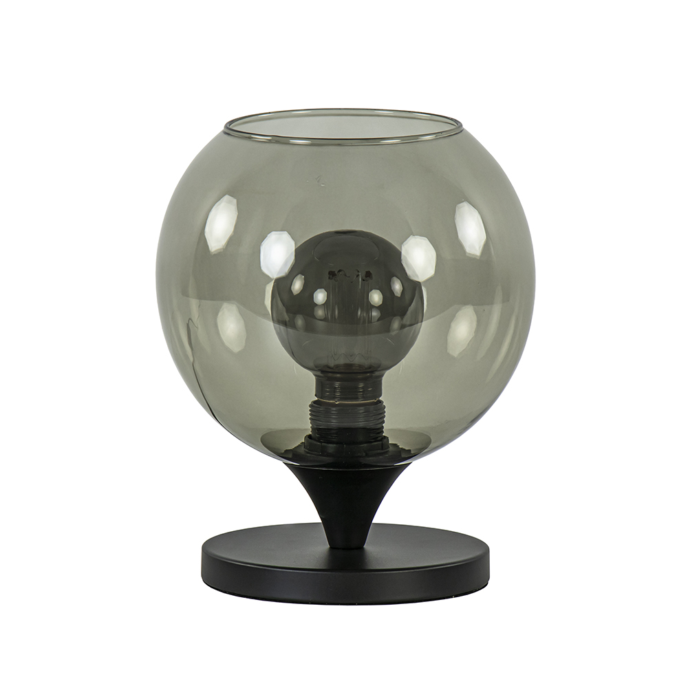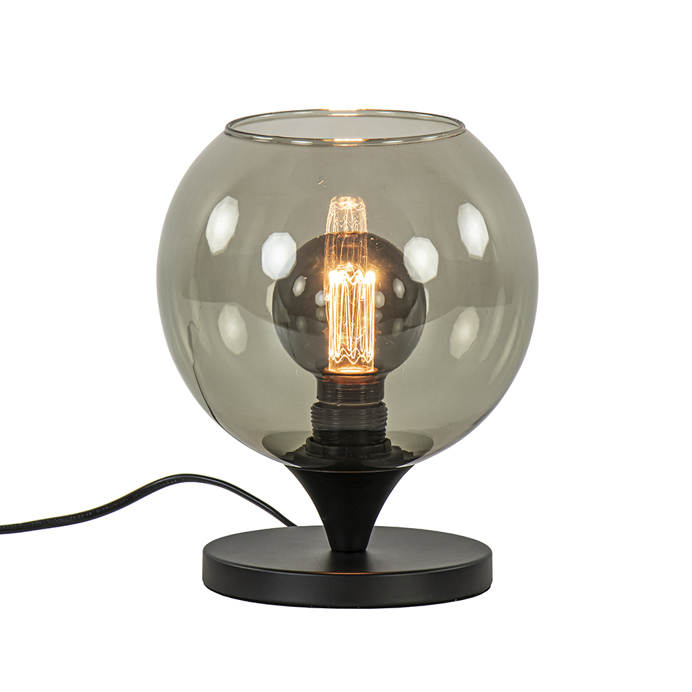 / Lampen / Tafellampen / Stijlvolle tafellamp zwart met smoke glas 20 cm