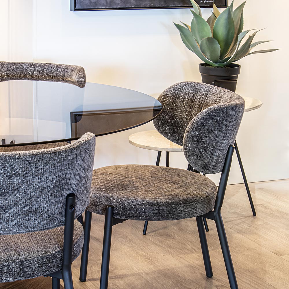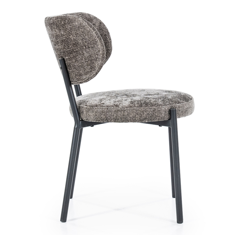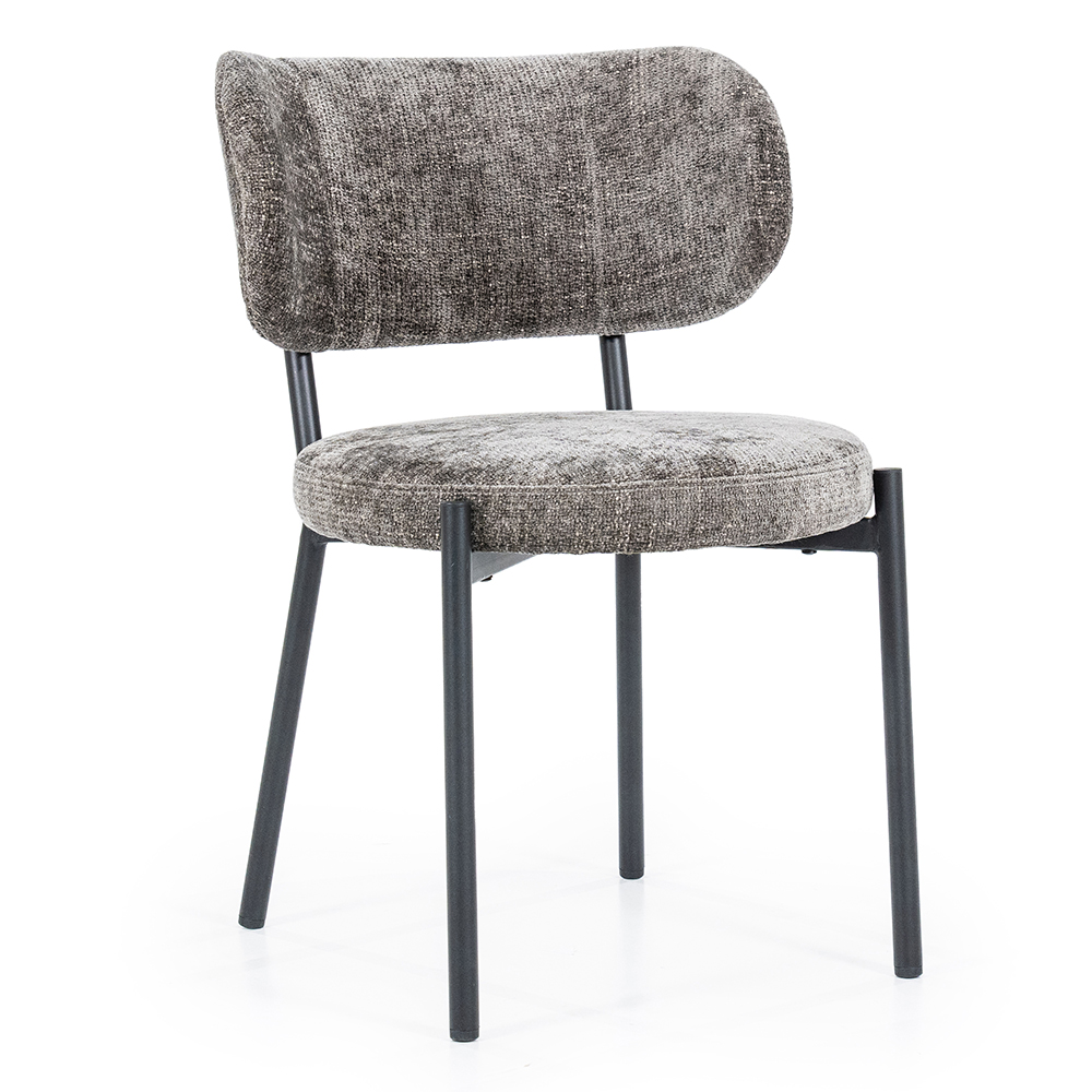 De “Oasis” is een sfeervolle eetkamer- of bureaustoel met een royaal rond zitvlak en licht gebogen rugleuning. De warme bruine stof en de slanke, zwarte stalen poten zorgen voor een tijdloze look die in vrijwel elke ruimte tot zijn recht komt.
