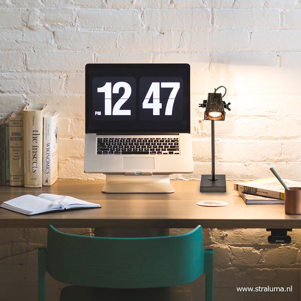 / Lampen / Bureaulampen / Stoere industriele tafel/bureaulamp black steel