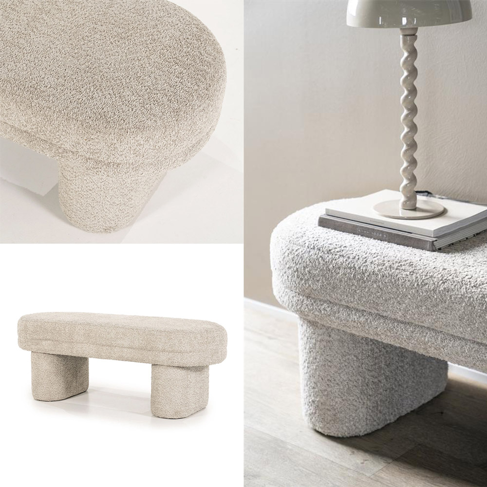 Waarom kiezen voor de Rama poef? • Multifunctioneel inzetbaar in elk interieur • Groot formaat voor extra comfort en gebruiksgemak • Neutrale taupe kleur – makkelijk te combineren • Ideaal als zitbankje, voetenbank of decoratief element • Zachte stof voor een warme en uitnodigende uitstraling
