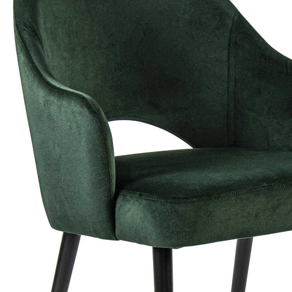 Mooi te combineren in een trendy, modern of klassiek interieur. Deze eetkamerstoel heeft een stoffen zitting die is uitgevoerd in het verlours groen. Het donker groen heeft een chique uitstraling wat de stoel geschikt maakt voor diverse woonstijlen. De eetkamerstoel is voorzien van mat zwarte houten poten.