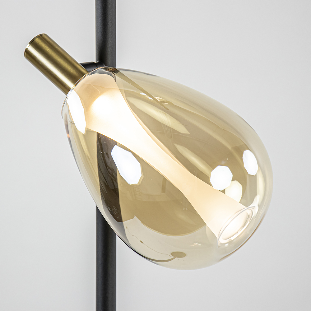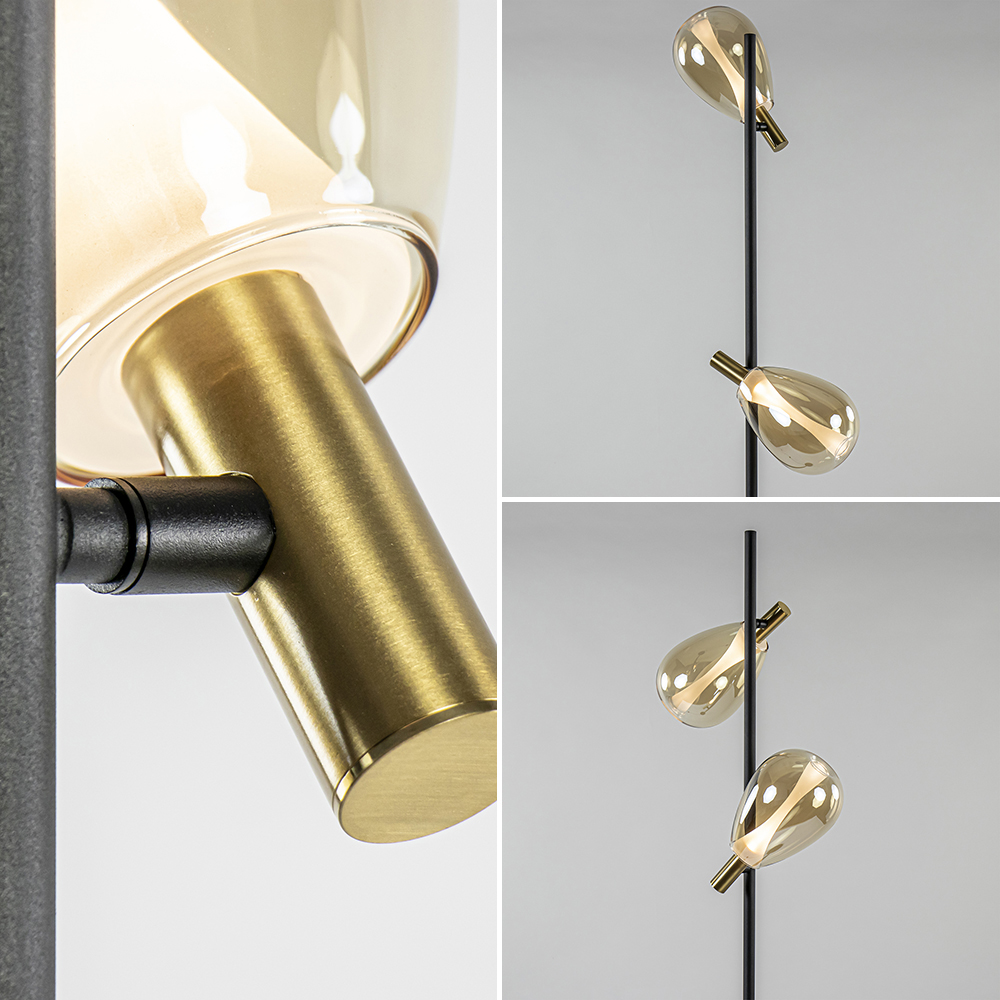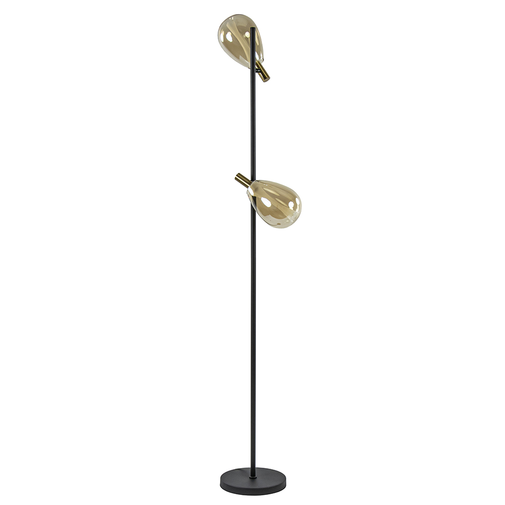 – afm: Ø28×170 cm – voet: Ø25×3 cm – kappen: Ø14×27 cm – metaal, mat zwart/brons – amber glas – inclusief LED – 2700 Kelvin – 1360 lumen – dimbaar – inclusief dimmer – zwart snoer