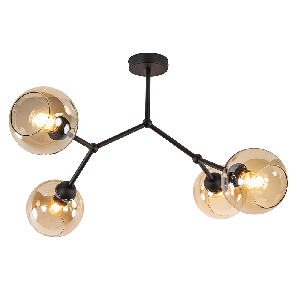 Strak klassieke plafondlamp 4-lichts met amber glas