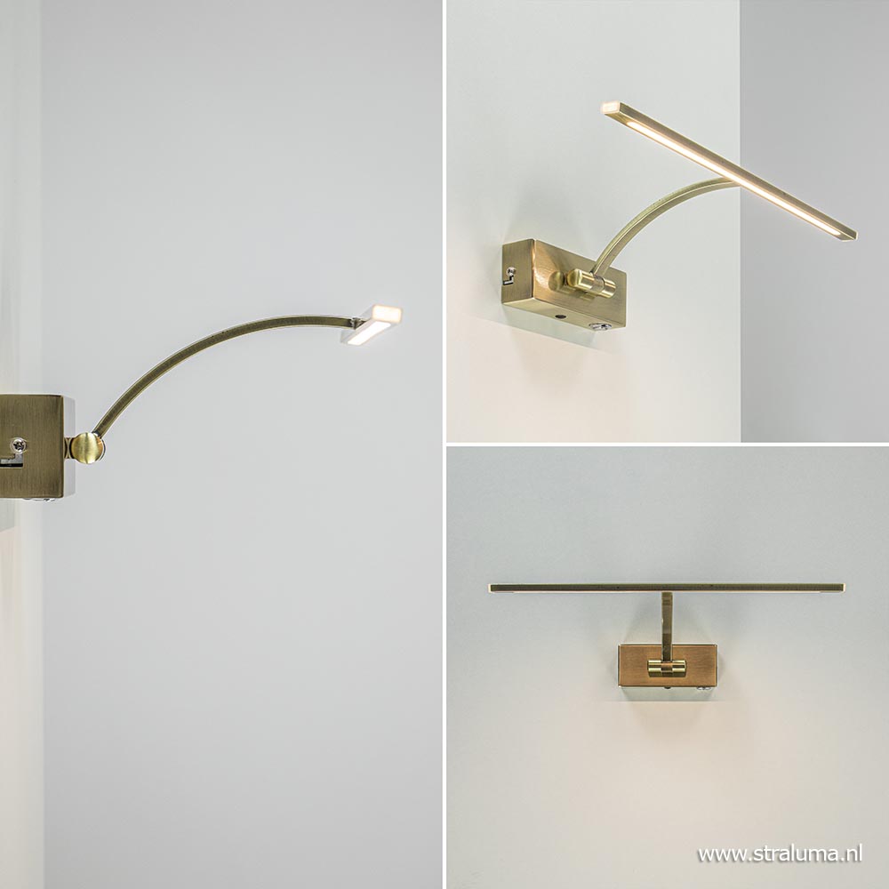De perfecte wandlamp voor het uitlichten van een schilderij of foto. De moderne schilderijverlichting heeft een strak en minimalistisch design en wordt gemakkelijk op de wand gemonteerd. Ideaal aan de LED lamp, is dat wanneer deze niet direct op een stroompunt kan worden aangesloten, de bevestiging is voorzien van een gat aan de onderzijde zodat er aan snoer aan kan worden gezet. Wordt het gat niet gebruikt, dan is deze netjes afgewerkt met een zwart dopje. Naast deze aansluiting bevindt zich ook de touchdimmer. Met een druk op de knop gaat de lamp aan of uit, houdt u uw vinger langer op de knop, dan dimt de lamp net zo lang tot u weer loslaat. Het bronzen armatuur is te kantelen zodat deze de juiste belichting boven een schilderij of foto kan geven. De moderne wandlamp kan ook prima dienen als bedlampje boven het hoofdbord.