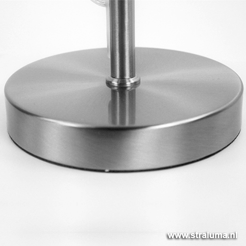 Details: – in hoogte verstelbaar 38-47 cm – voetplaat Ø 12 cm, hoogte 2,5 cm – geschikt voor LED, dus energiezuinig – transparant snoer 190 cm