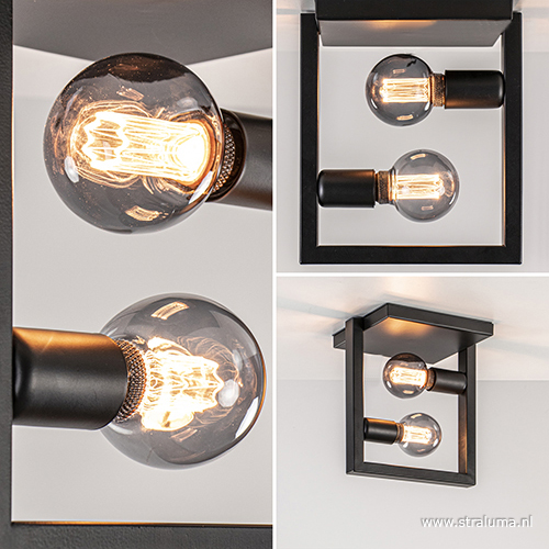 Homepagina / Lampen / Plafondlampen / Strakke zwarte plafonnière metaal Frame