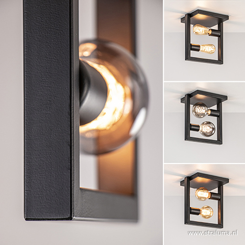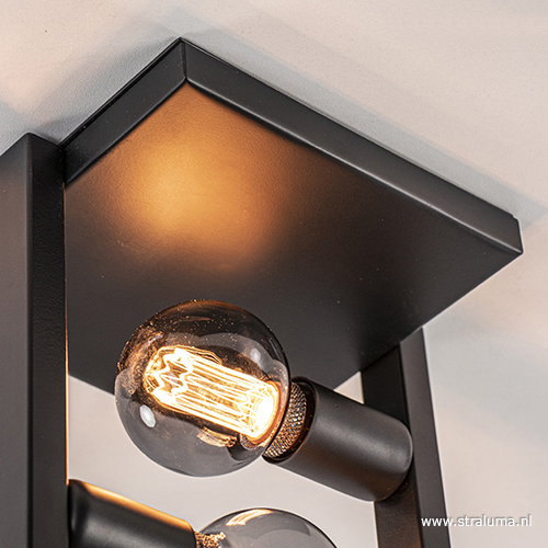 Stoere zwarte plafondlamp-plafonnière waar u zelf de sfeer bij kunt bepalen. Wilt u modern dan kiest u voor heldere lichtbronnen zodat de plafonniere extra strak blijft. Maar kiest u liever voor de laatste trend van hout met zwart staal dan adviseren wij u de vintage lichtbronnen, deze geven sfeer en warmte net zoals de eettafels die u nu veel ziet, hout en staal gecombineerd. Staal zorgt voor de strakke uitstraling en het hout voor de warmte. Leuk voor in de hal, woonkamer of keuken. Net even iets heel anders dan de eenvoudige schaal tegen het plafond. Door de eenvoudige E27 fitting kunt u diverse lichtbronnen gebruiken van helder tot vintage LED lichtbronnen.
