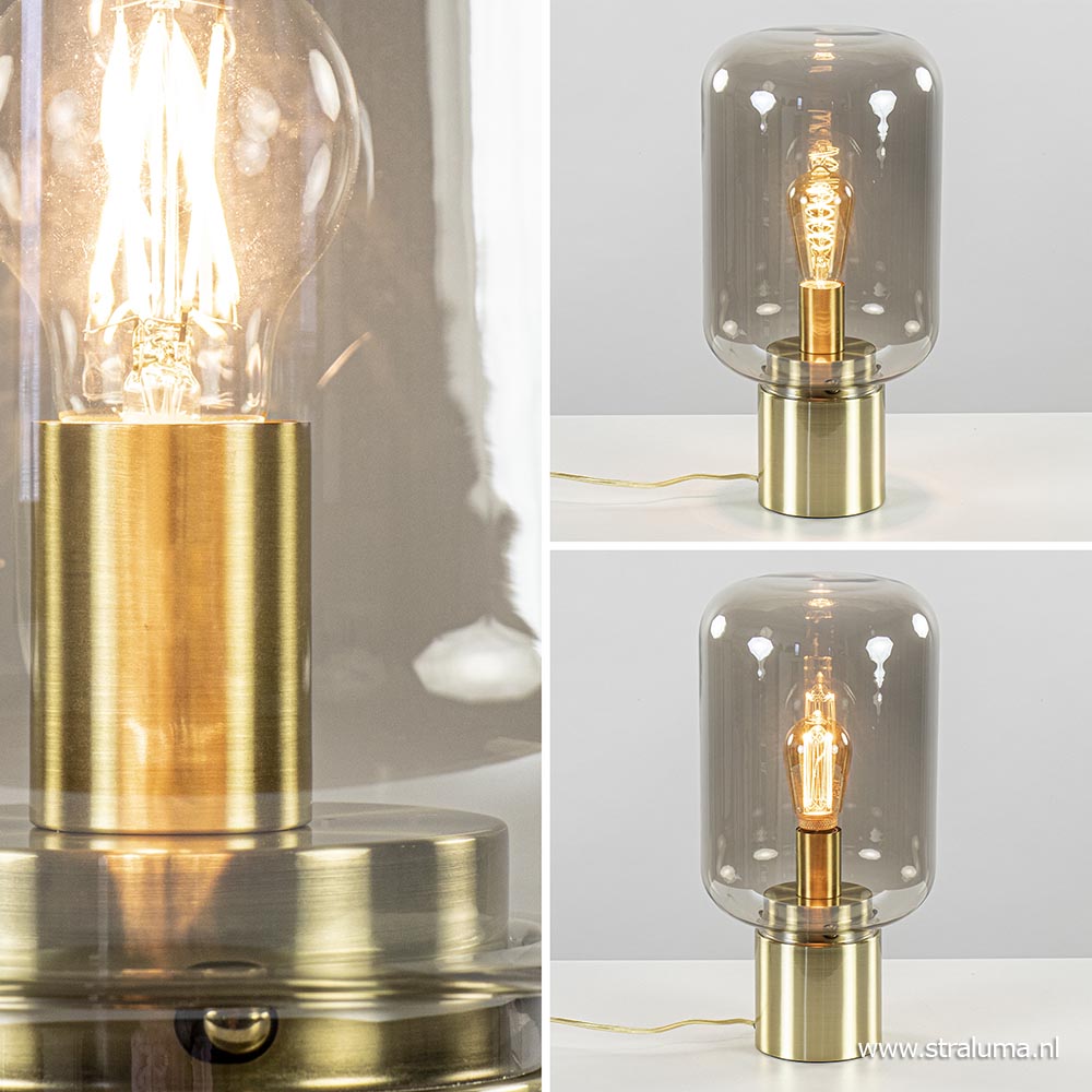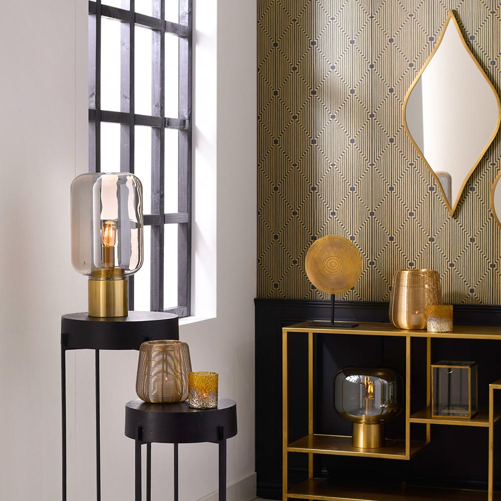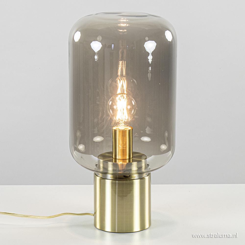 / Lampen / Light and Living / Tafellamp Arturan messing + smoke glas