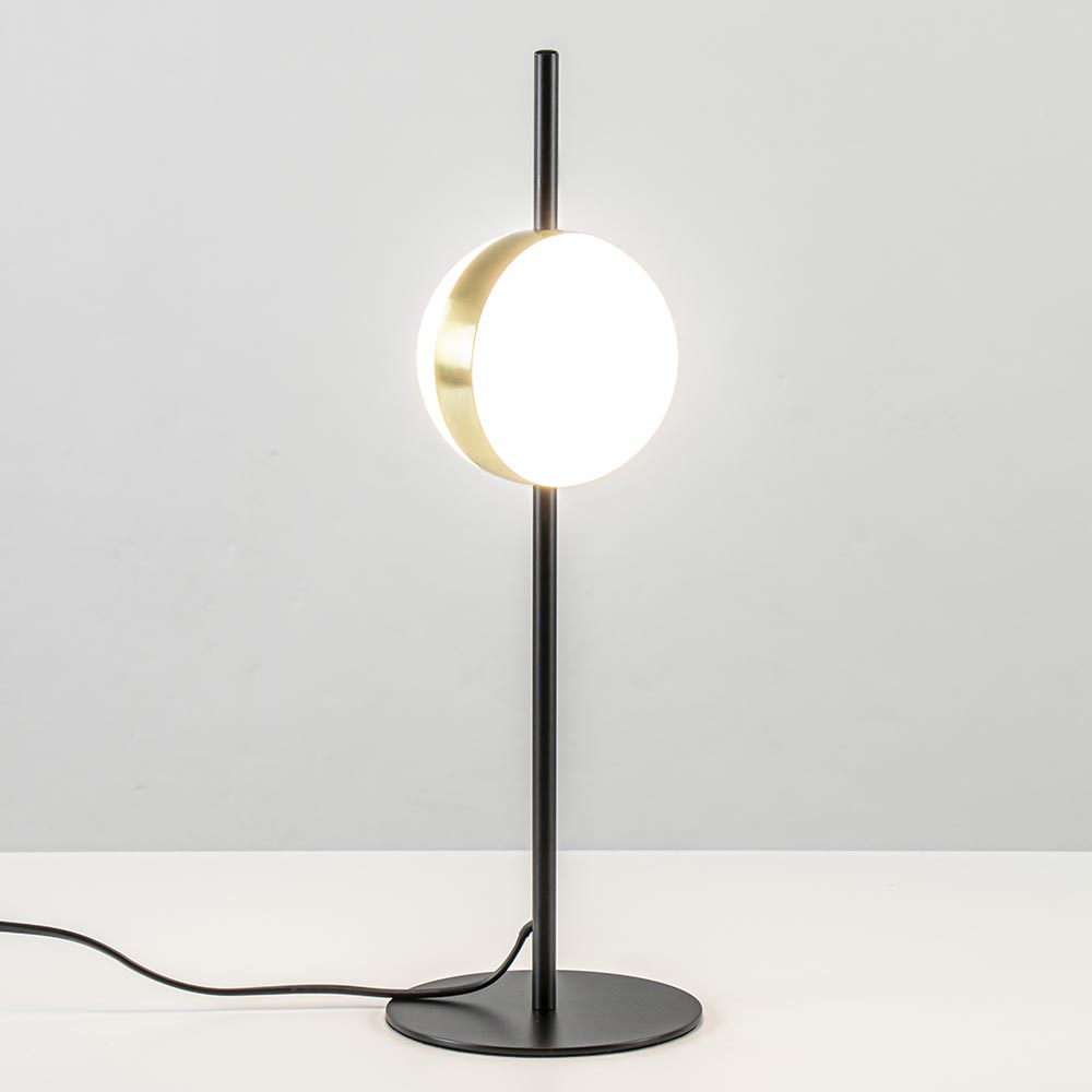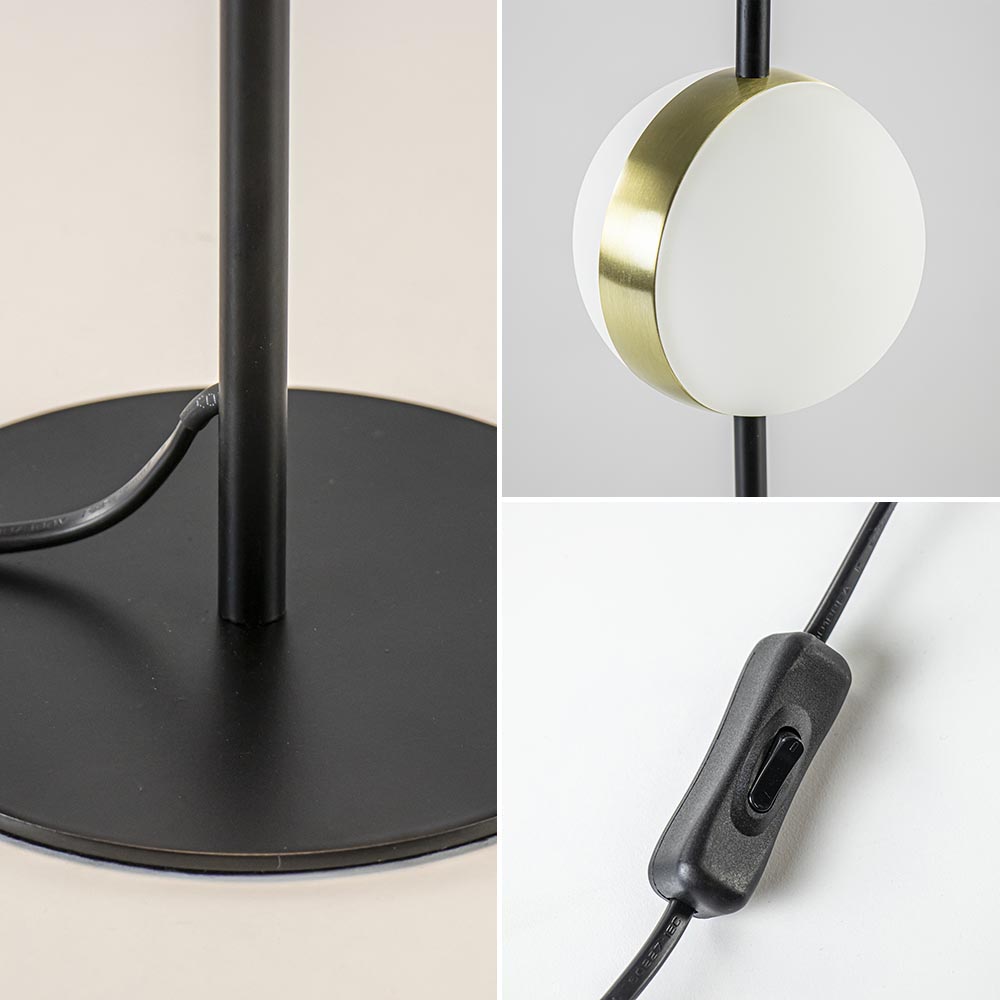 Een leuke toevoeging op een kast, nachtkastje of bijzettafel. Deze kleine tafellamp is voorzien van een kunststof bol waarin LED verlichting is verwerkt. De bol zorgt voor een diffuus licht dat mooi over de ruimte wordt verspreid. Met 600 lumen geeft de LED tafellamp dan ook behoorlijk wat licht. Het armatuur is zwart en als detail is er een gouden ring toegepast op de bol. De LED tafellamp is voorzien van een zwart snoer met een lengte van 200 cm. De schakelaar zit op 75 cm in het snoer.