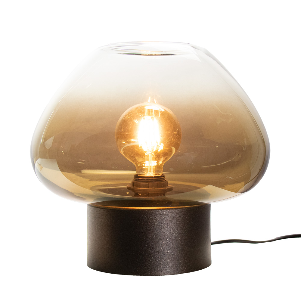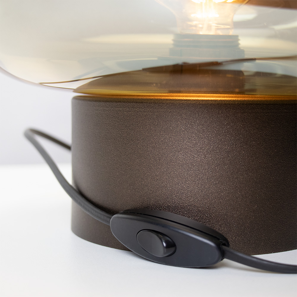 Tafellamp Genua is met haar luxe, elegante uitstraling niet te missen in uw interieur. De amber smoke glazen kap rust mooi op de zwarte voet en heeft een prachtige overloop van amber- naar helder glas. De lamp is voorzien van een snoer van 180 cm met een schakelaar op 65cm. De armatuur is voorzien van een donker bronze kleur die prachtig wordt ondersteund door de amber kleur van de kap. Erg mooi in verschillende woonstijlen.