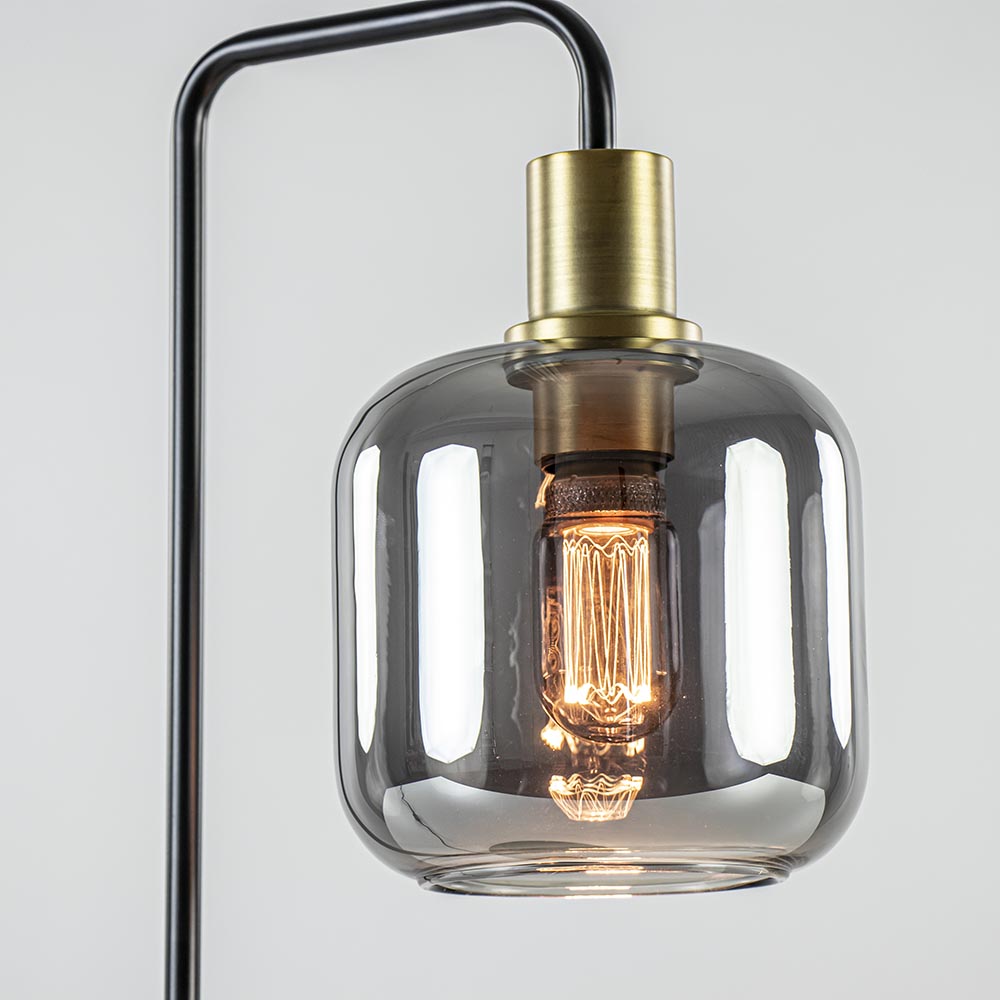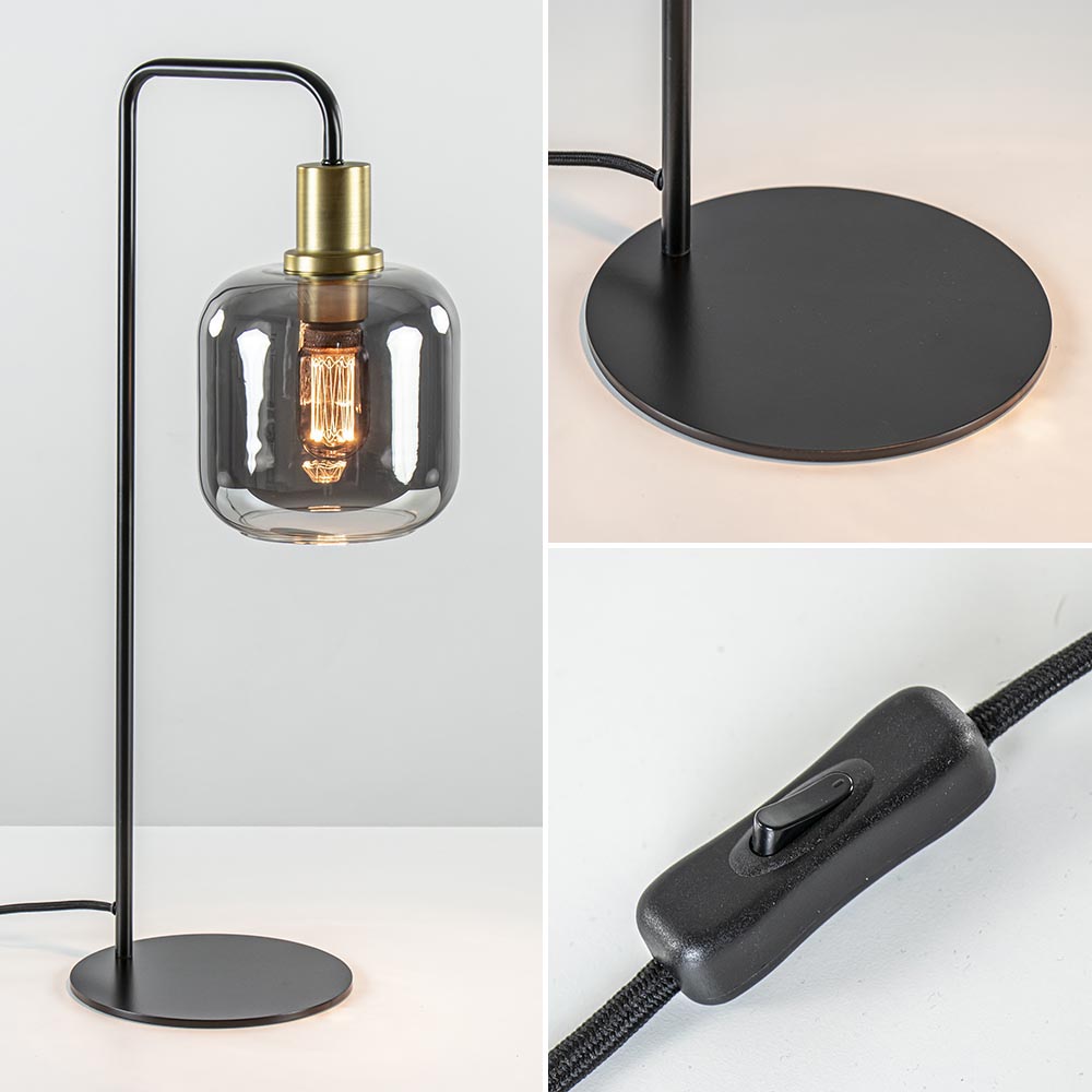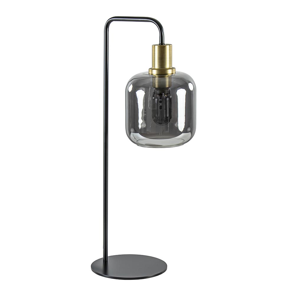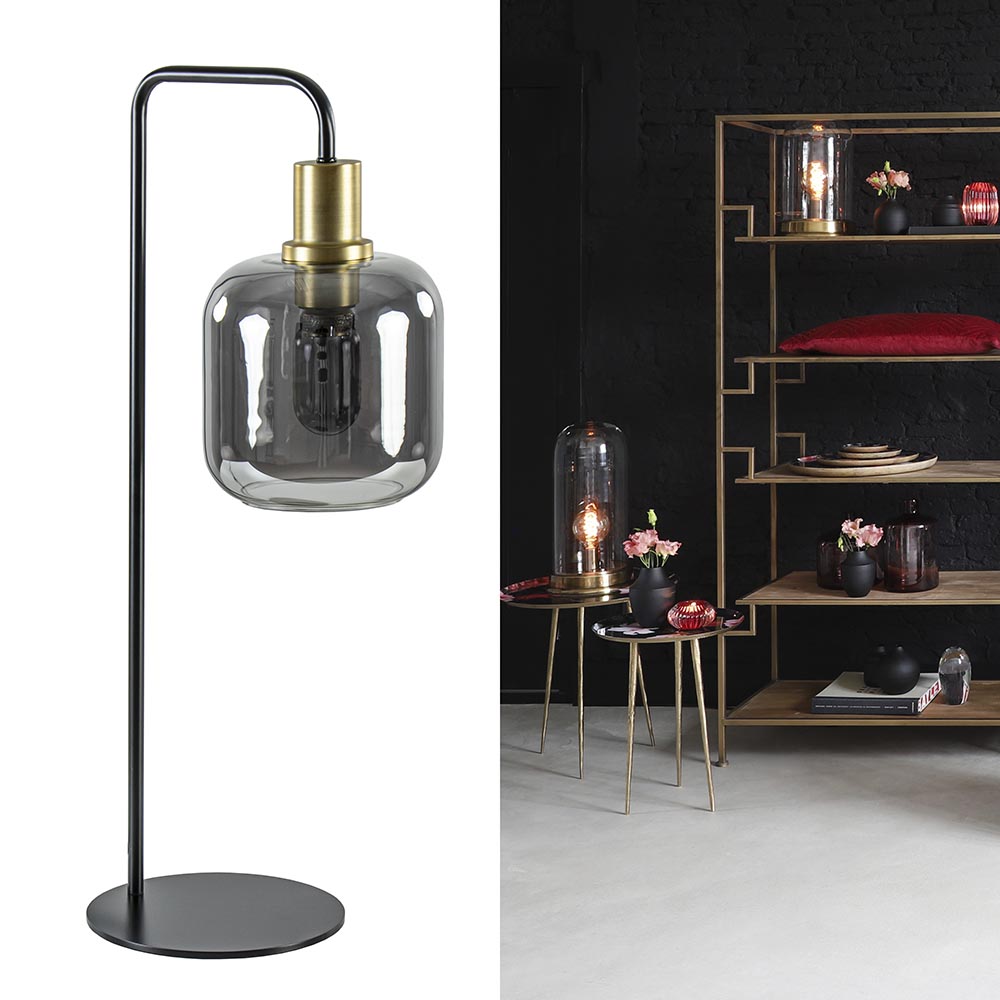 Homepagina / Lampen / Light and Living / Tafellamp Lekar zwart/brons met smoke glazen kap