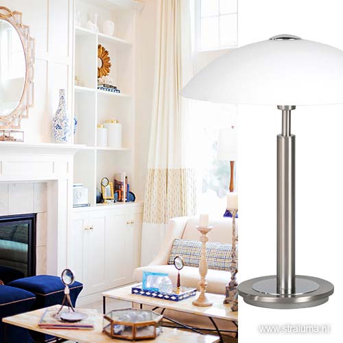 Homepagina / Lampen / Nachtkastlampen / Tafellamp nikkel/glas wit + touchdimmer