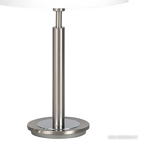 Deze moderne tafellamp is van geborsteld staal met chromen details. Hij is makkelijk te bedienen door de 3 standen touch dimmer. Door de eenvoudige bediening ideaal voor naast het bed, bijzettafel of dressoir. Deze lamp is ook verkrijgbaar in een brons uitvoering.