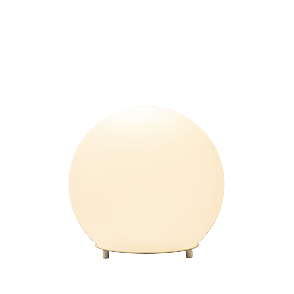 Sfeervol op een dressoir, kast of het nachtkastje. Deze ronde tafellamp is gemaakt van opaal glas wat een sfeervol diffuus licht verspreid. De witte bol wordt ondersteund door metalen pootjes en is voorzien van een wit snoer met een lengte van 135 cm. De knipschakelaar bevindt zich op 40 cm in het snoer. De tafellamp witte bol 20 cm wordt geleverd zonder lichtbron (E27).