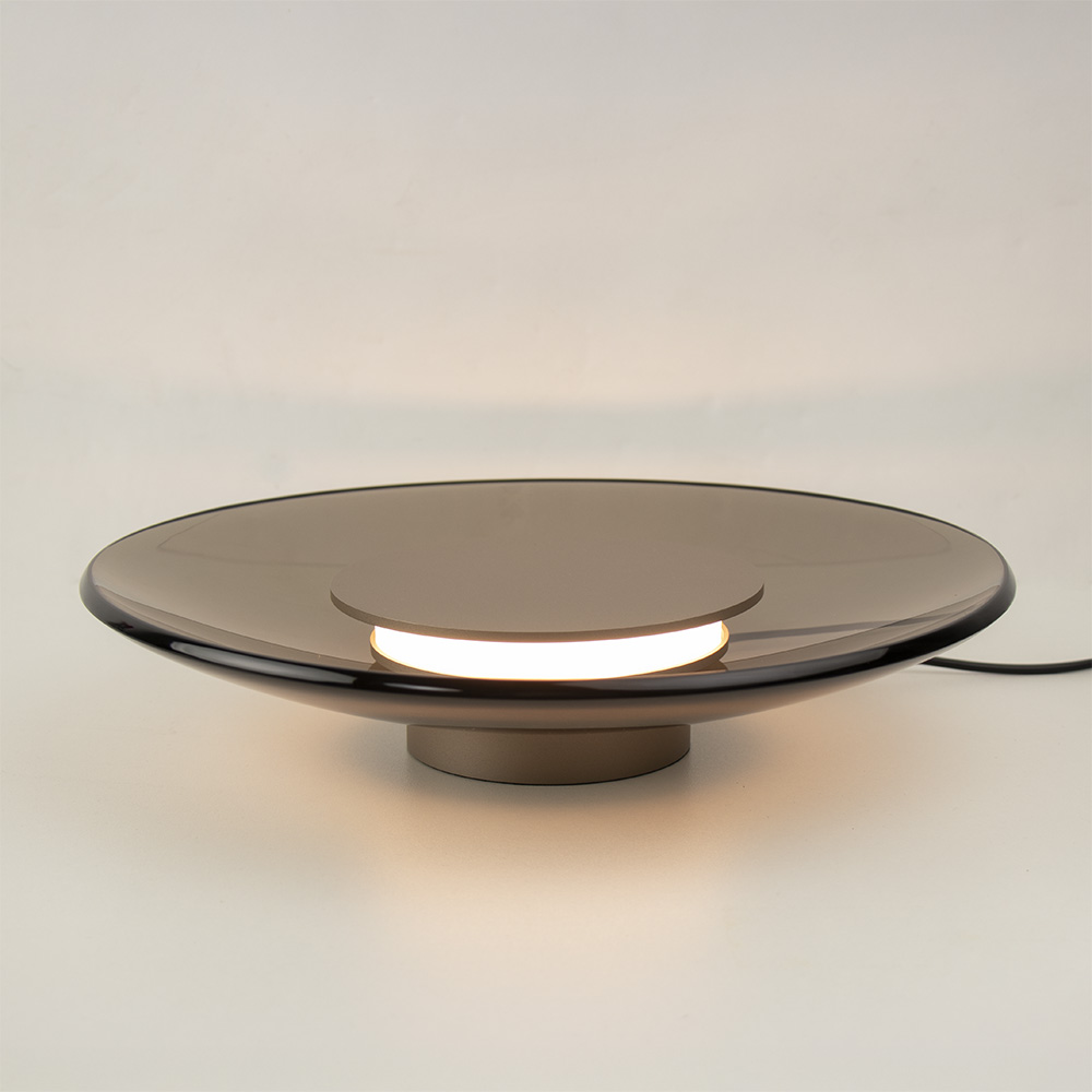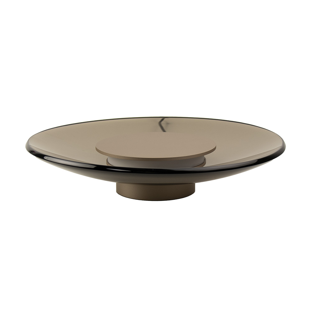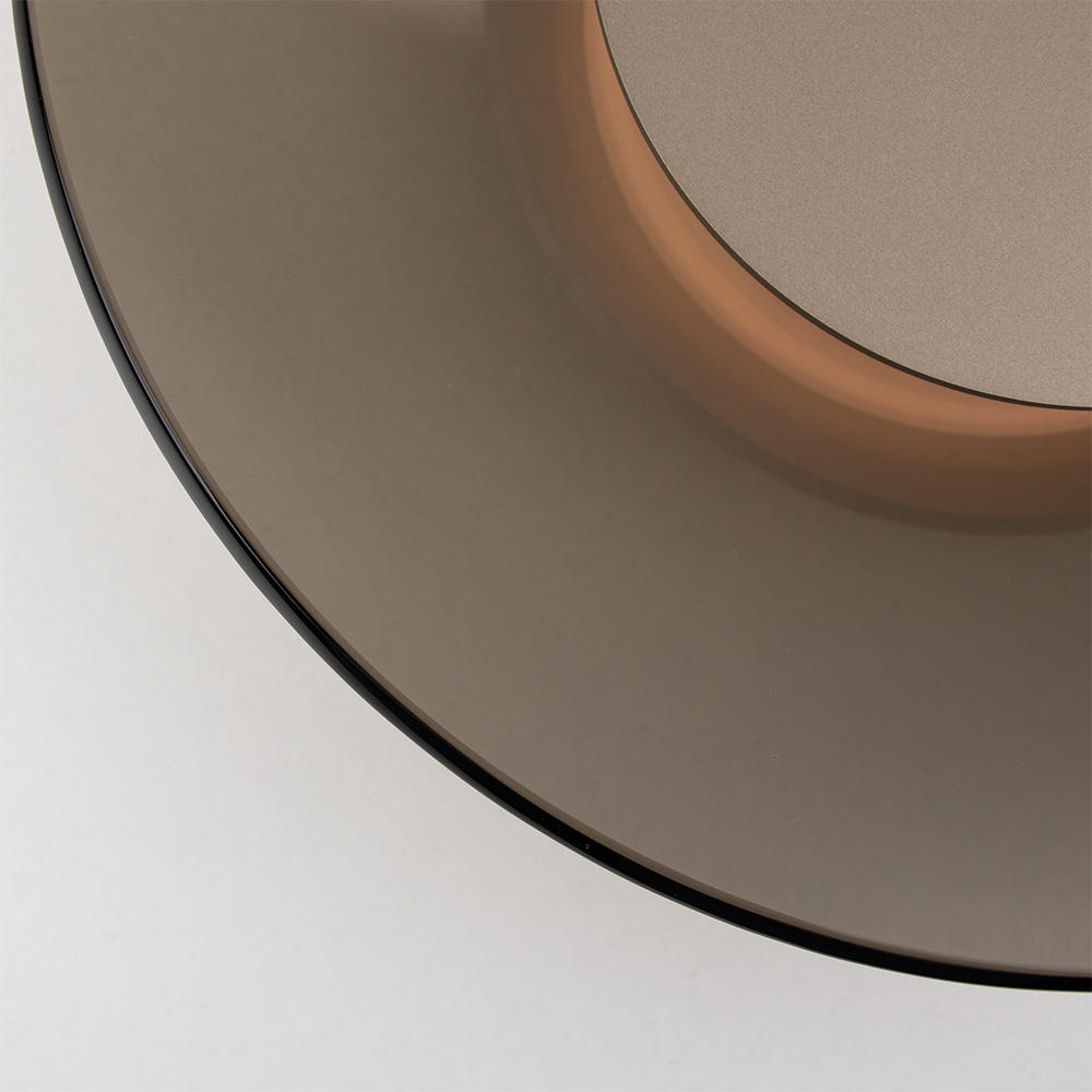 Details: – Afmeting: ø32 x 7 cm – Voet: ø10x2cm – Kleur: Brons – Materiaal: glas & metaal – Geïntergreerd LED – 1300 Lumen – 2700 Kelvin – 12 Watt – Gewicht: 2.32 kg – Snoer: 195 cm – Aanraakdimmer