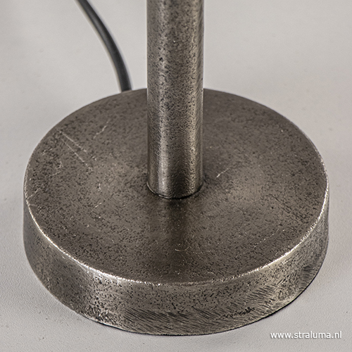 – hoogte van de lamp is 36 cm (exclusief kap) – voet heeft een afmeting van Ø12×3 cm – metaal, ruw nikkel – inclusief zwart snoer van 155 cm, schakelaar op 57 cm – exclusief kap – exclusief lichtbron (E27)