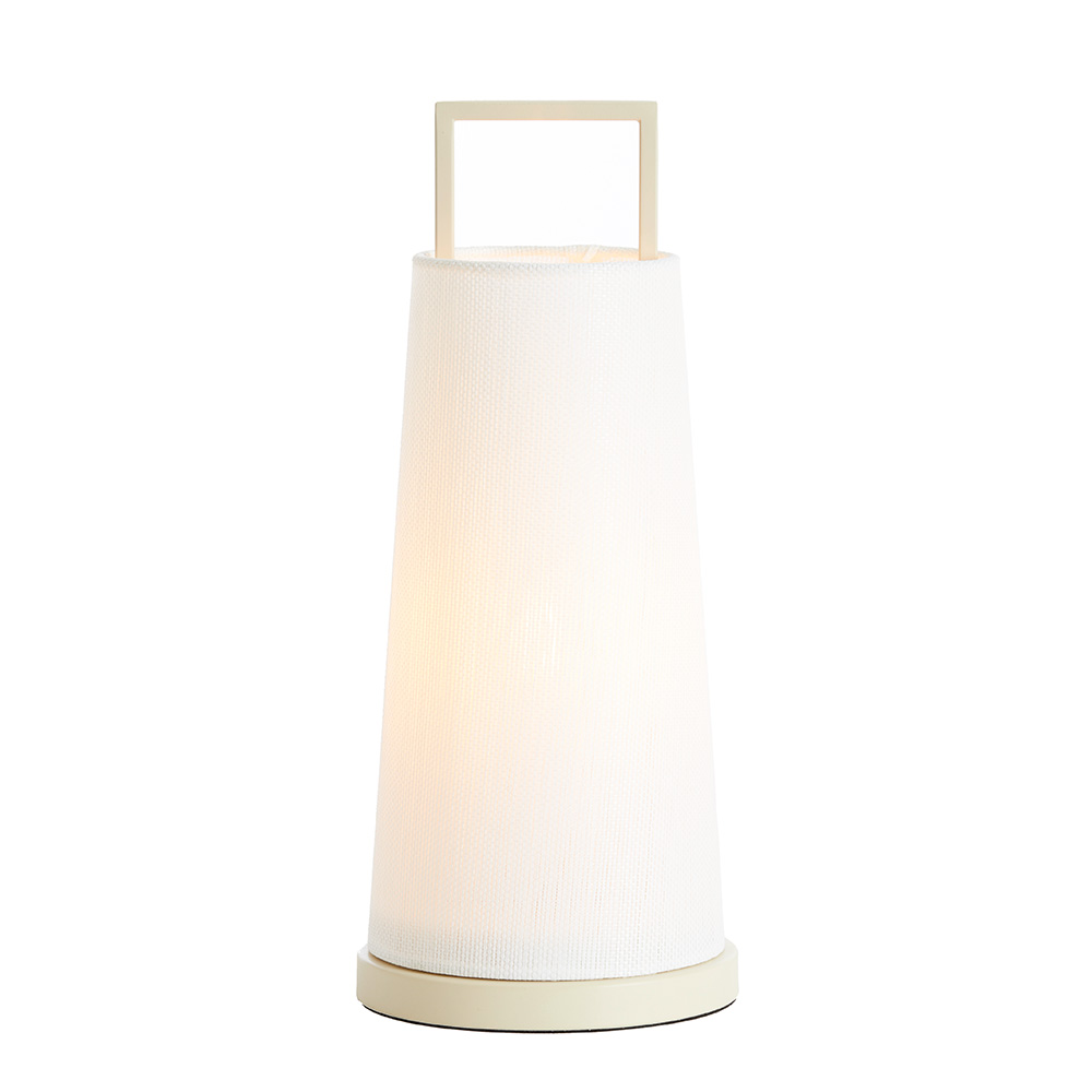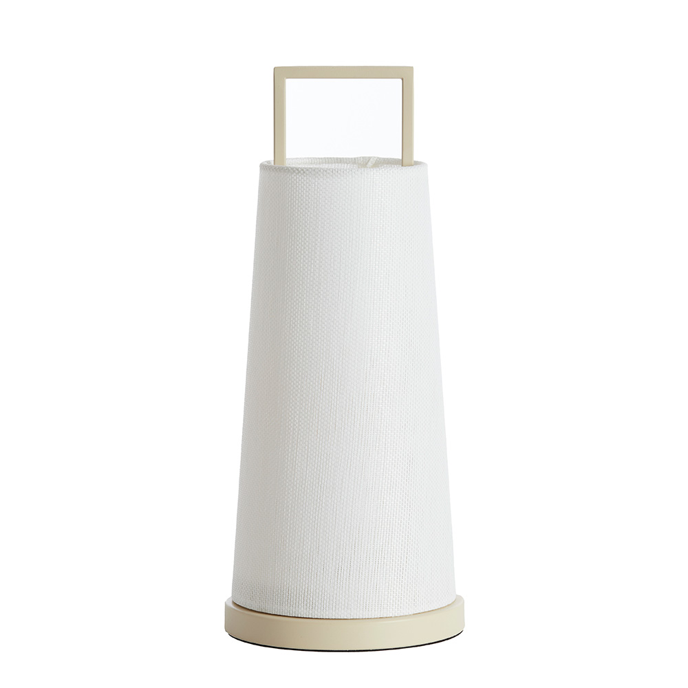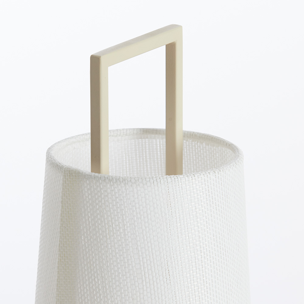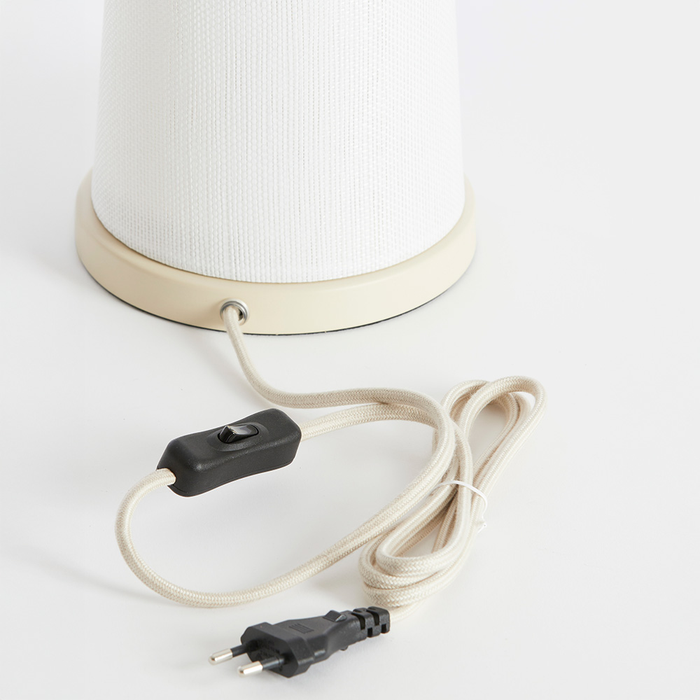 Deze lamp combineert een modern, minimalistisch ontwerp met een speelse en functionele uitstraling. Het smalle, conische lampenkap van textiel heeft een zachte, witte kleur die een warme, sfeervolle verlichting creëert. Het metalen handvat bovenaan biedt een subtiele maar opvallende designelement dat de lamp een eigentijdse flair geeft. De lamp is perfect voor diverse interieurstijlen, van strak en modern tot meer rustiek. Dankzij het eenvoudige maar doordachte ontwerp is deze lamp zowel praktisch als een decoratieve toevoeging aan je ruimte.De schakelaar op de kabel zorgt ervoor dat je eenvoudig de verlichting kunt bedienen.