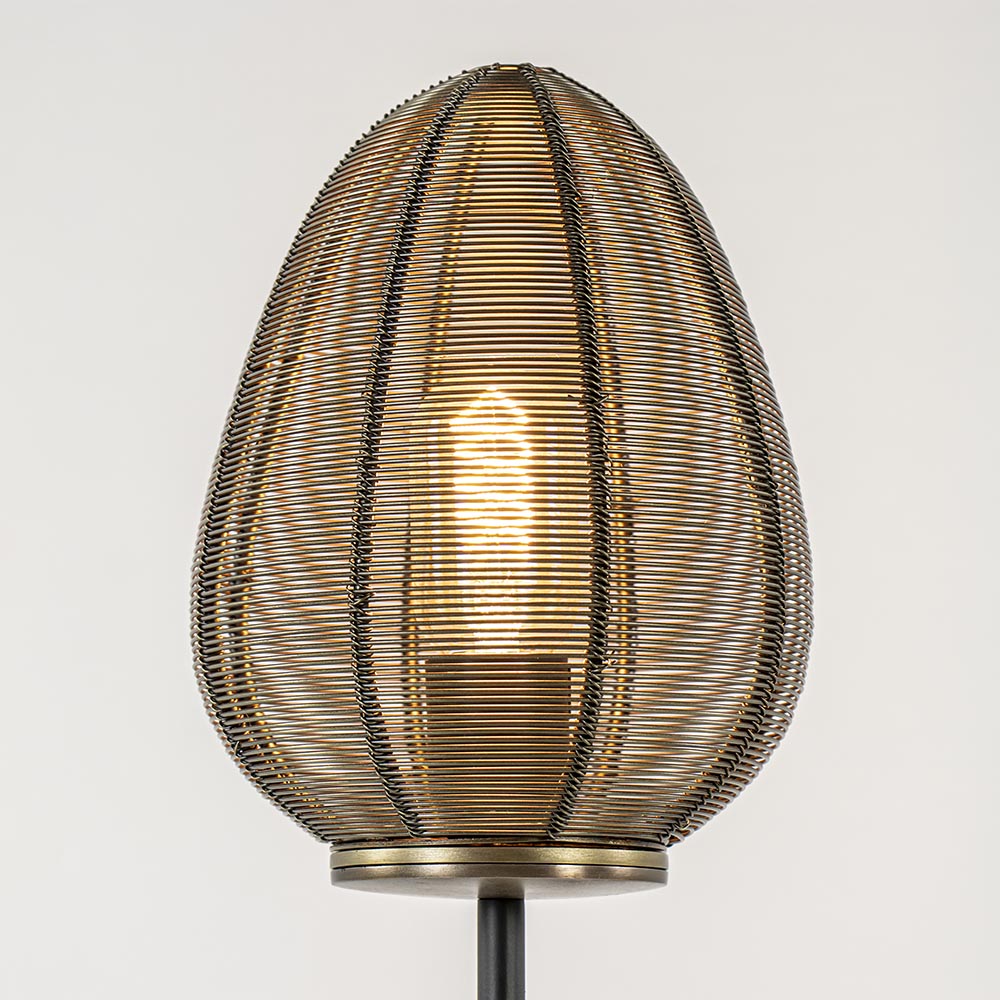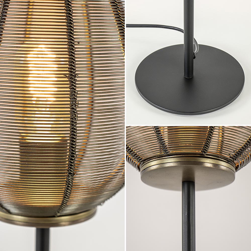 – Afmeting: Ø18 x 51cm – voet: Ø18 x 0.5cm – Kap: Ø18 x 21 cm – Metaal, antiekbrons – Metaal, mat zwart – Exclusief lichtbron (E27) – Dimbaar (exclusief)