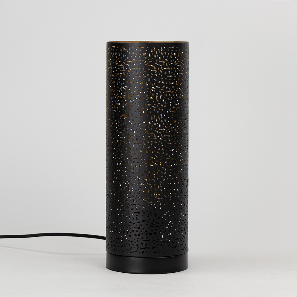 Tafellamp Zara creëert direct een warme en gezellige sfeer dankzij het uitgesneden patroon en het gouden binnenwerk. Het speelse lichteffect van de zwarte metalen kap zorgt voor prachtige lichtschaduwen in de ruimte. De combinatie van zwart en goud geeft deze lamp een stijlvolle en elegante uitstraling. Perfect voor in de woonkamer, slaapkamer of op een dressoir.