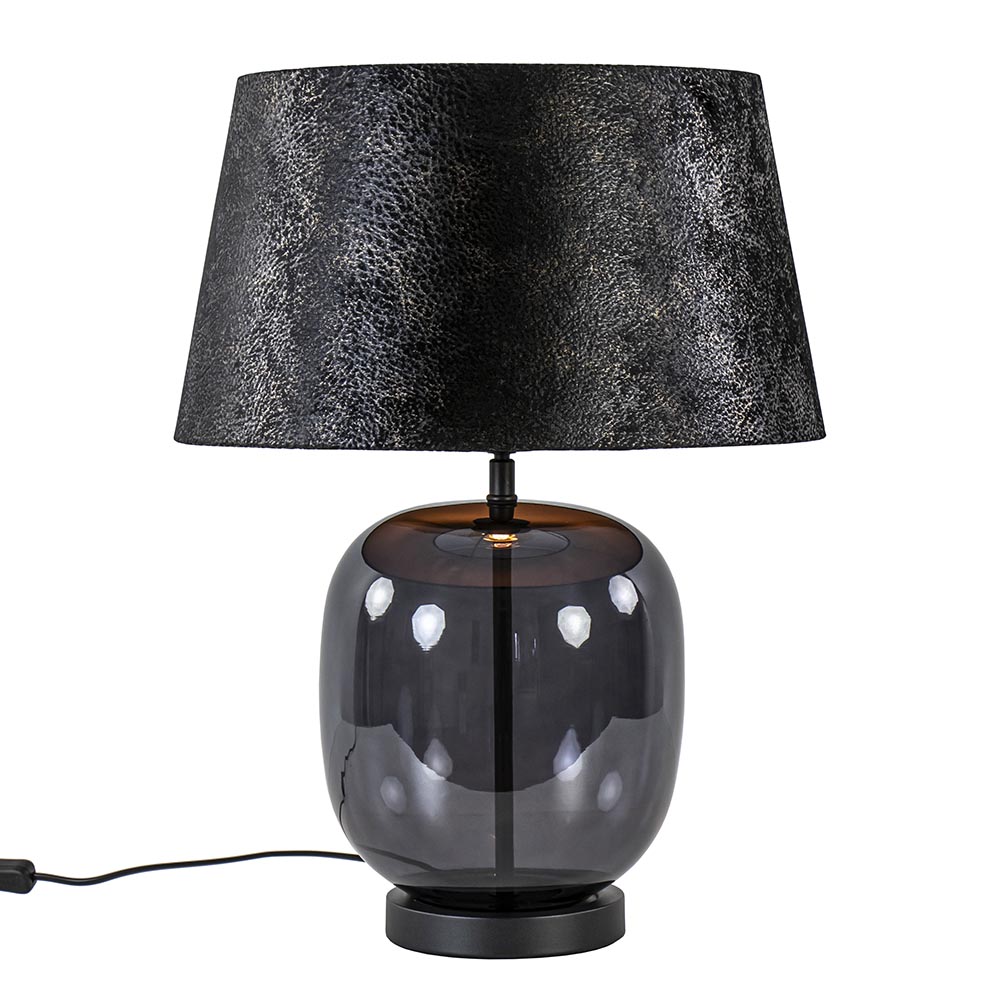 / Lampen / Schemerlampen / Tafellamp zwart glas met ronde kap 40 cm
