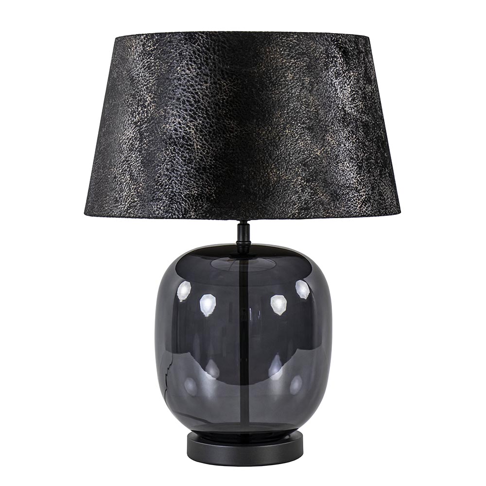 Deze prachtige lamp heeft een chique en luxe uitstraling door de combinatie van de materialen en kleuren. Zo heeft de tafellamp een glazen voet die is uitgevoerd in het zwart. Dit is gecombineerd met een stoffen kap in het zwart/taupe met een glinstering erin. De combinatie maakt de tafellamp perfect geschikt voor een hotel chic, strak klassiek of luxury interieur. De kap wordt ondersteund door een kogelgewricht zodat u de kap goed recht kunt zetten. De glazen tafellamp met kap heeft een zwart snoer met een lengte van 180 cm en een knipschakelaar op 30 cm. De chique tafellamp wordt geleverd zonder lichtbron.
