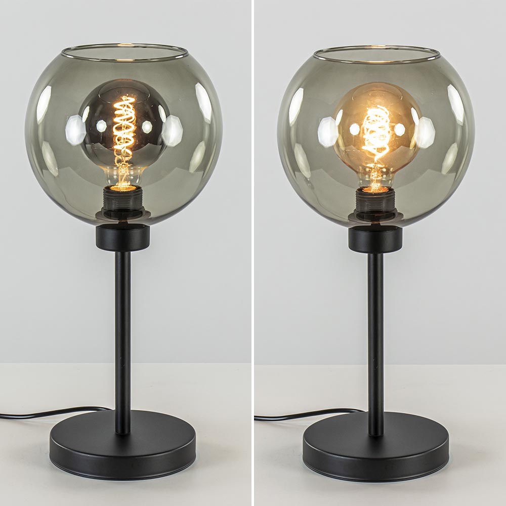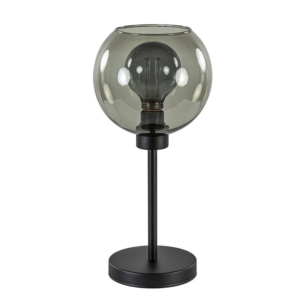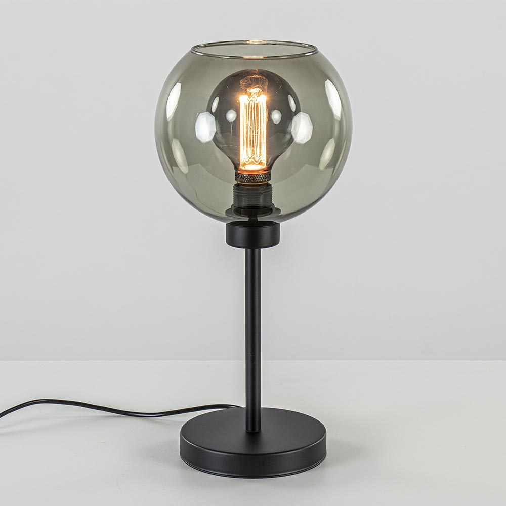 / Lampen / Tafellampen / Tafellamp zwart met smoke glazen bol