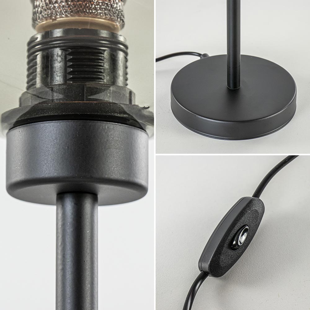 – hoogte: 42,5 cm – kap: Ø20×18 cm – voet: Ø15×2,5 cm – metaal, mat zwart – smoke glas – zwart snoer: 160 cm, schakelaar op 70 cm – exclusief lichtbron (E27)