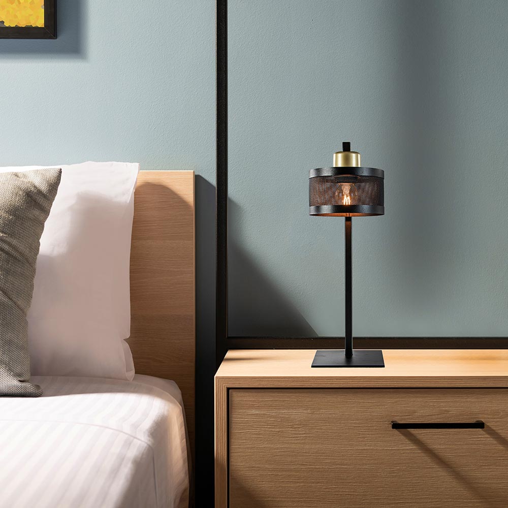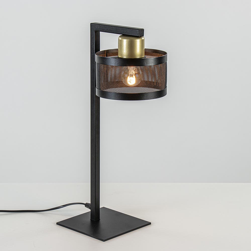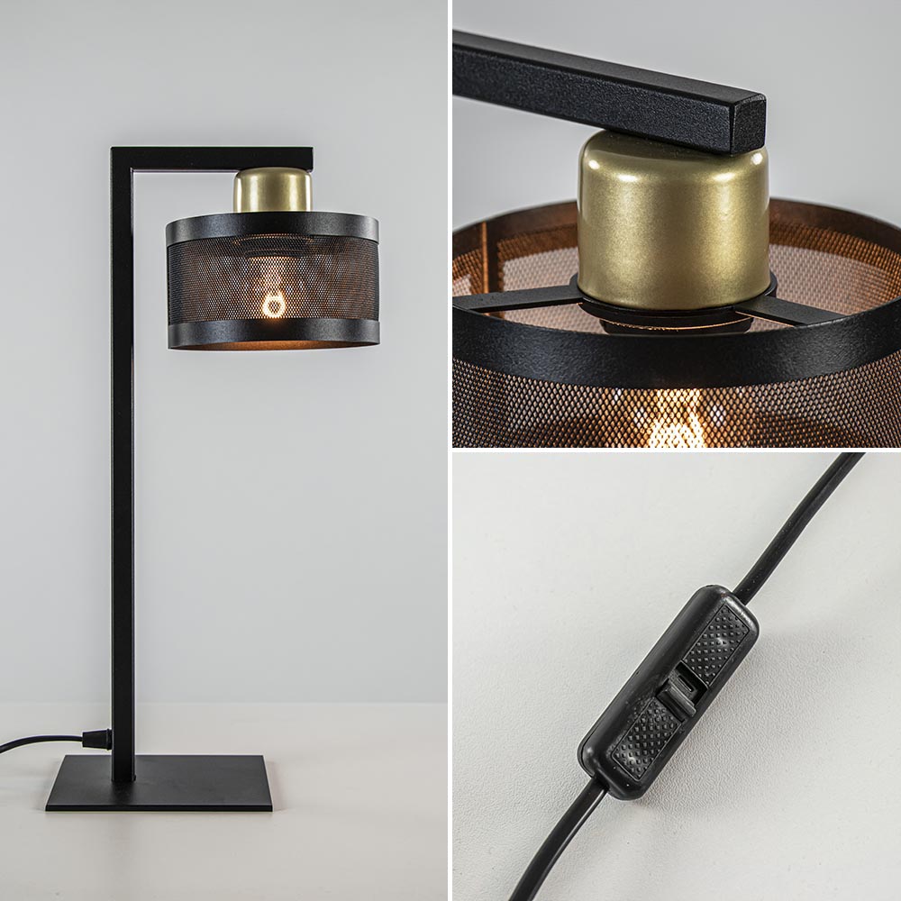 Een stoere tafellamp met een landelijke twist. De tafellamp is volledig gemaakt van metaal en voorzien van een mat zwarte finish. Als leuk detail is de fitting afgewerkt met goud. Deze combinatie maakt de tafellamp prima geschikt voor diverse woonstijlen. De ronde kap geeft de zwarte tafellamp een stoere look waar het strakke armatuur meer een minimalistische moderne uitstraling geeft. Door het formaat past de zwart met gouden tafellamp prima op een bijzettafel of nachtkastje. De tafellamp zwart met goud wordt geleverd zonder lichtbron (E27) en met een zwart snoer van 180 cm, met een knipschakelaar op 90 cm van de voet.