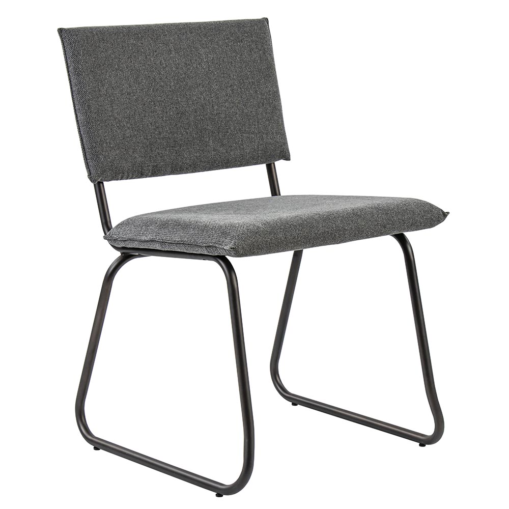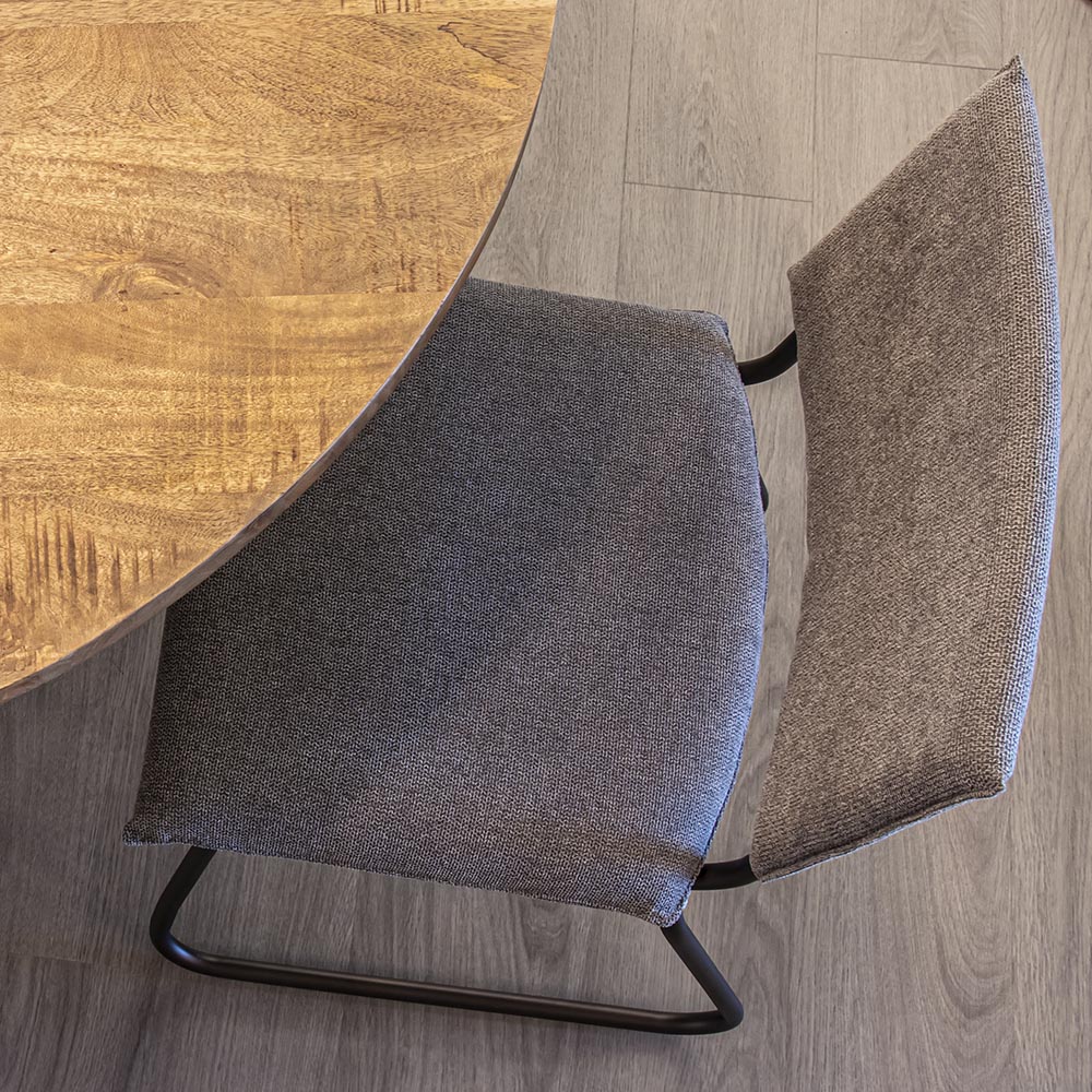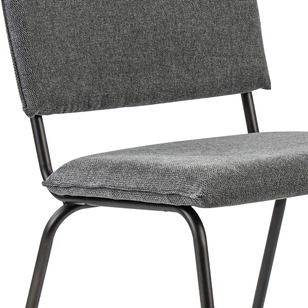 Deze trendy eetkamerstoel maakt de eethoek helemaal af. De stoel is voorzien van een stoffen zitting met een grove structuur uitgevoerd in het grijs, en een metalen poot in de kleur gunmetal. Dit geeft de stoel een stoere look die mooi matcht met de robuuste eettafels. Leuk per 6 om een rechthoekige tafel of met 4 om een ronde tafel. De eetkamerstoel heeft een fijne zitting en rugleuning.
