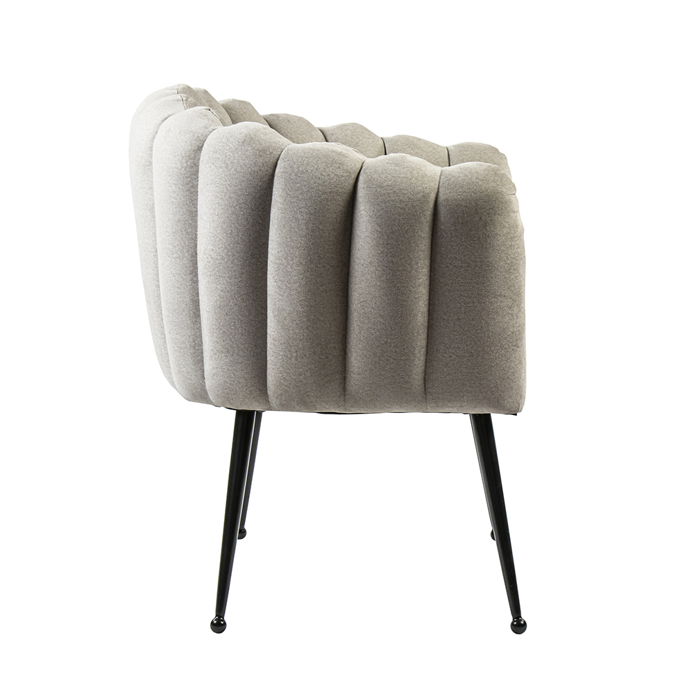 Een trendy fauteuil met een doorgestikte leuning. De stoffen zitting voelt zacht en comfortabel aan en de rugleuning die doorloopt in de armleuning geeft een fijn support. De stoffen zitting is uitgevoerd in het bruin en gecombineerd met smalle zwart metalen pootjes.
