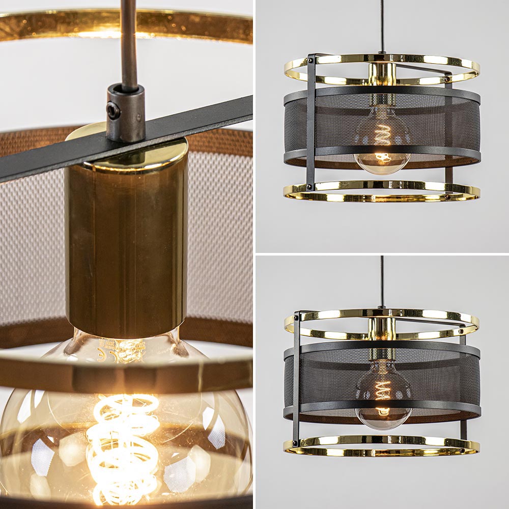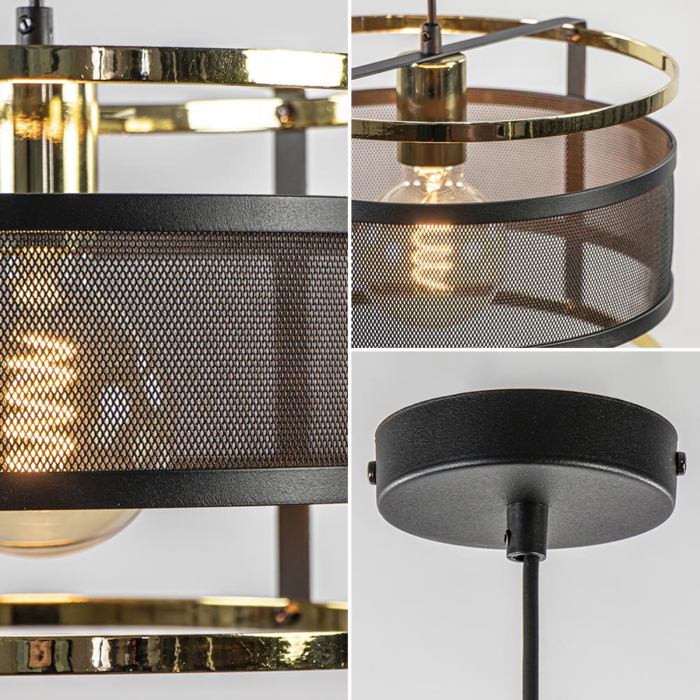 Een trendy hanglamp die helemaal past binnen de huidige woontrends. De ronde hanglamp is gemaakt van metaal en uitgevoerd in het mat zwart met hoogglans goud. Door de open gaaskap laat de hanglamp genoeg licht door en is deze prima toe te passen boven een eettafel, in de woonkamer of in de slaapkamer. Het glimmende goud geeft een mooi contrast aan het matte zwart en zorgt voor een trendy look en feel. De ronde hanglamp zwart met goud wordt geleverd exclusief lichtbron en is dimbaar middels een externe dimmer (exclusief).
