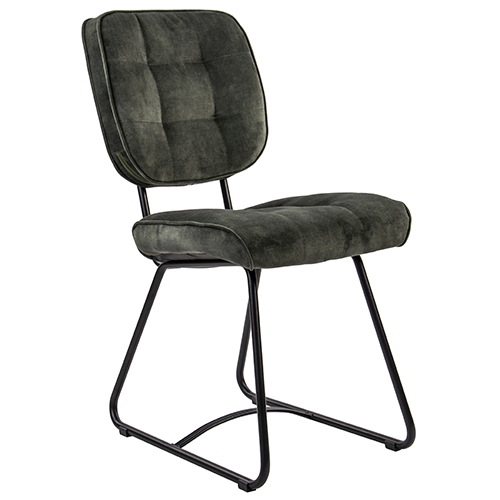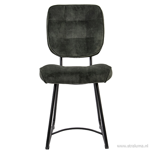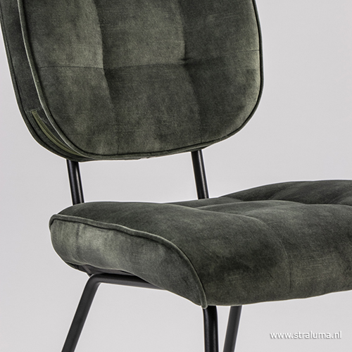 Dit trendy stoeltje past helemaal binnen de trends van nu. De strakke lijnen van de mat zwarte poten passen mooi bij een landelijk of modern interieur en de velours stoffen zitting en rugleuning geven de eetkamerstoel een luxe uitstraling. Op de rug is de stoel voorzien van een handvat zodat u de stoel gemakkelijk onder de tafel vandaan kunt schuiven. De velourse stoel heeft een hoog zitcomfort zodat tafelen en natafelen een waar genot is.