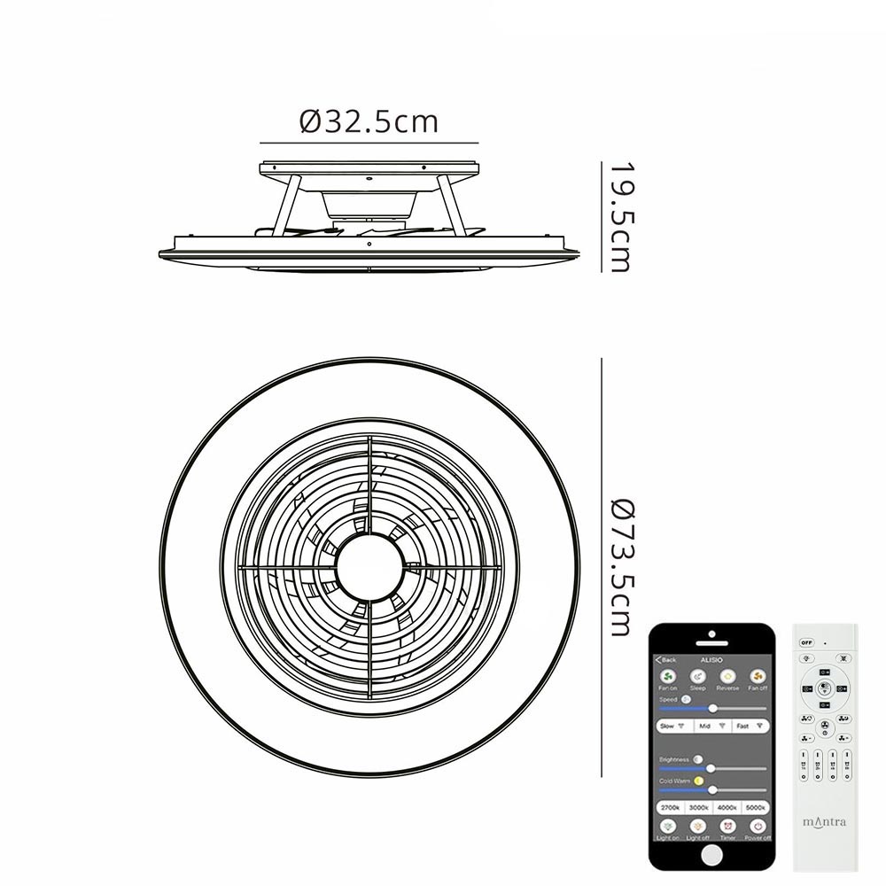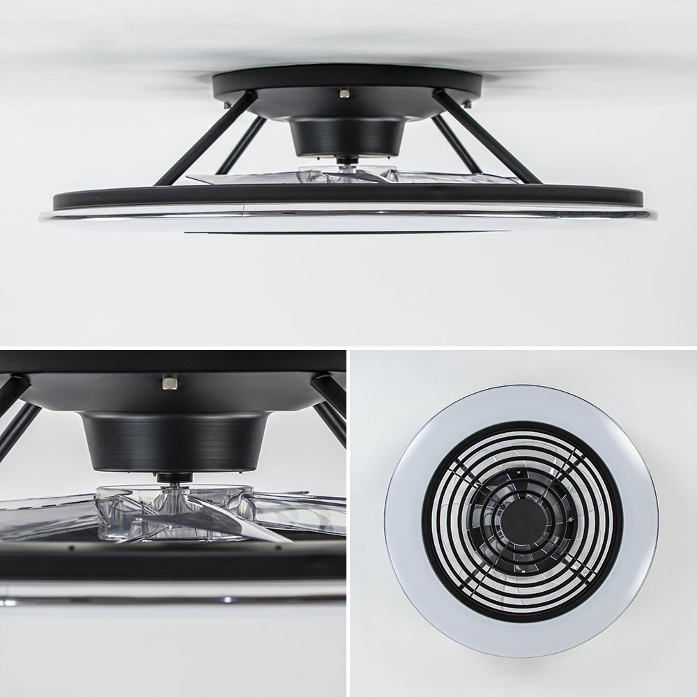 Een moderne variant van de klassieke plafondventilator. Deze zwart met chromen ventilator en plafondlamp inéén doorbreekt de standaard modellen met de losse bladen. Deze strakke ventilator bestaat uit twee delen, de buitenste ring is voorzien van geïntegreerd LED en de binnenste ring behuisd de ventilator. Het mooie is ook nog dat de ventilator en de lamp zijn te bedienen via de meegeleverde afstandsbediening, maar ook gemakkelijk met uw mobiel. Middels een app en bluetooth stelt u snel de gewenste snelheid van de ventilator in of dimt u de verlichting. Deze is in te stellen qua kleur en intensiteit, ideaal voor in de woonkamer of slaapkamer. Een ventilator is nog nooit zo strak en gemakkelijk bedienbaar geweest.