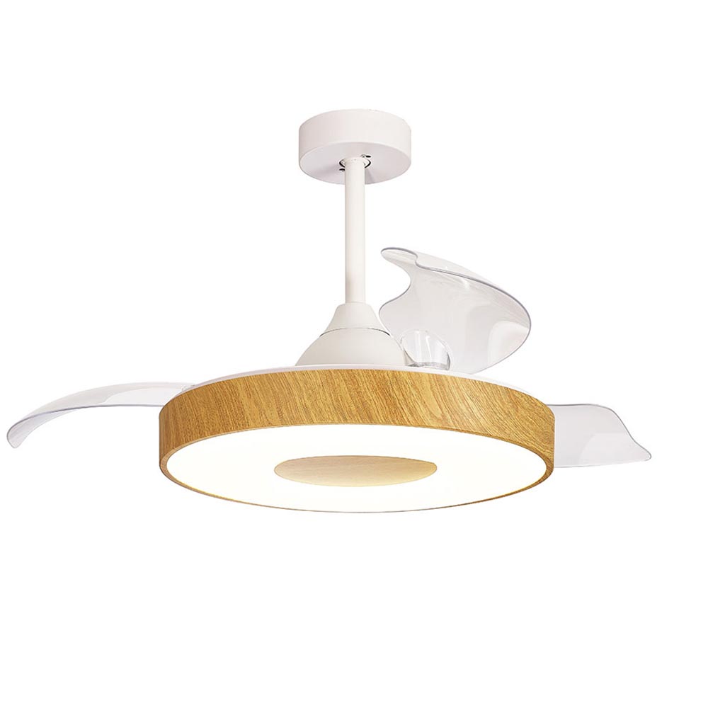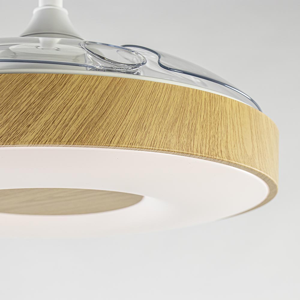 Deze prachtige ventilator brengt het oude design samen met nieuwe technologie. De plafondventilator dient zowel als plafondlamp en ventilator. De lamp is voorzien van geïntegreerd LED welke gemakkelijk te bedienen is dmv de meegeleverde afstandsbediening. Hiermee kunt u de lamp dimmen en van kleurtemperatuur veranderen. Ook de ventilator is dimbaar middels de afstandbediening. De losse bladen klappen uit zodra de ventilator wordt ingeschakeld. Het is dus van belang dat de ruimte er omheen vrij is. De transparante bladen geven de ventilator een moderne look. De kap van de lamp is uitgevoerd in het hout. De plafondventilator is geschikt voor een ruimte vanaf 20m2 en is voorzien van een zomer en winterstand. Ideaal voor een grote slaapkamer of woonkamer. Er worden 2 stangen meegeleverd waarmee u zelf kunt bepalen welke hoogte u de plafondventilator geeft.